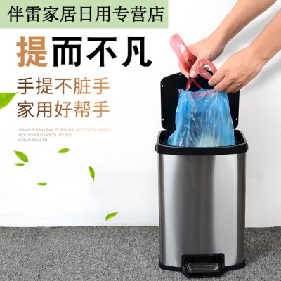 抽绳式垃圾袋 家用厨房加厚手提式办公室用收口大塑料袋 1卷【14只装】