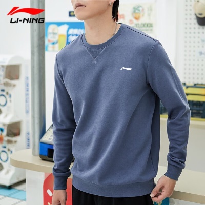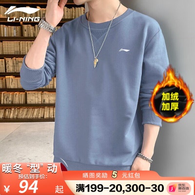 李宁 卫衣男秋冬季加绒加厚保暖宽松舒适圆领套头长袖T恤运动上衣 火石蓝(加绒) L/175(135-150斤)
