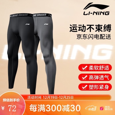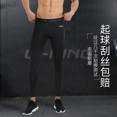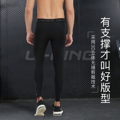 李宁(LI-NING)紧身裤男运动篮球裤速干裤健身跑步服高弹训练品牌压缩裤透气春秋加绒足动篮球裤 黑色紧身长裤(不加绒) L【168-180cm】【120-165斤】