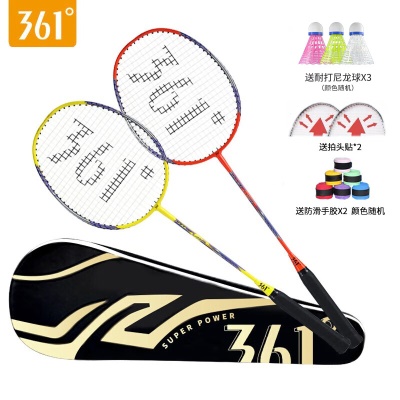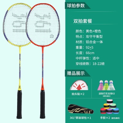 361°羽毛球拍套装含羽毛球专业训练一体双拍已穿线含手胶 橙黄双拍
