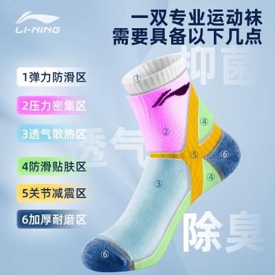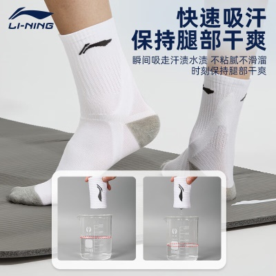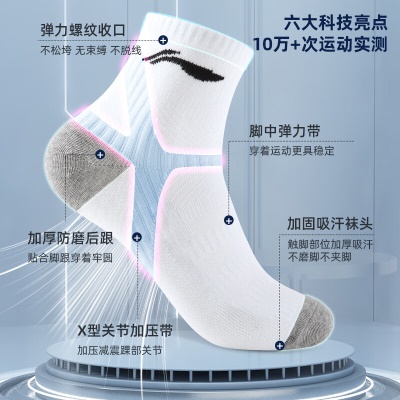 李宁篮球袜运动袜男士跑步加厚耐磨袜子防脱透气中筒棉袜四季吸汗毛巾底保暖袜【高弹均码】黑白灰【3双装】
