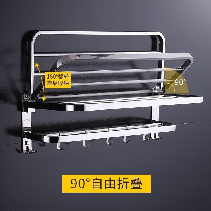 卡塞格林 卫生间置物架免打孔 浴室置物架毛巾架折叠浴巾架厕所洗手间挂件收纳架浴室用品 304不锈钢-58cm(免打孔/打孔两用)