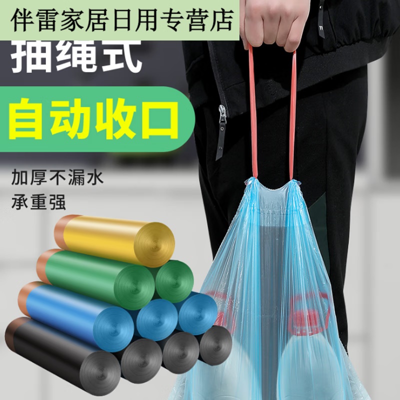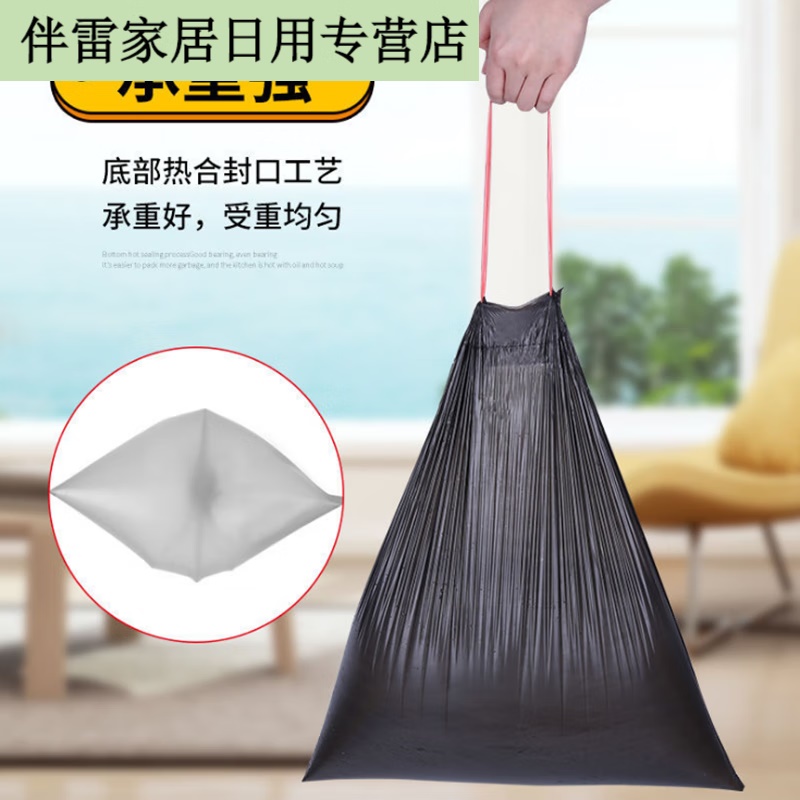商品名称:抽绳式垃圾袋 家用厨房加厚手提式办公室用收口大塑料袋 1卷【14只装】