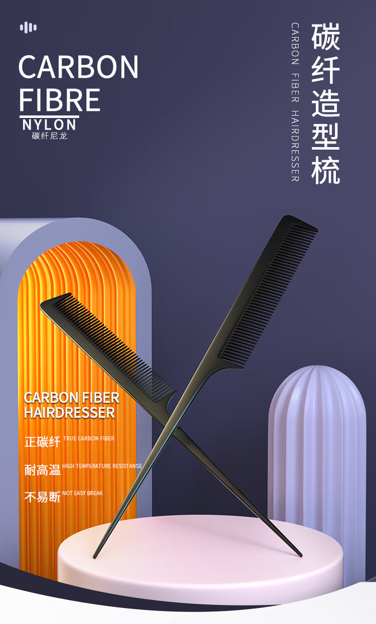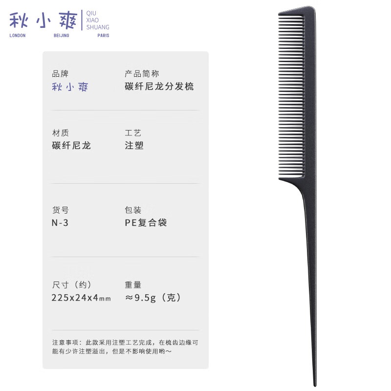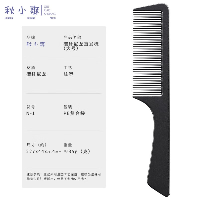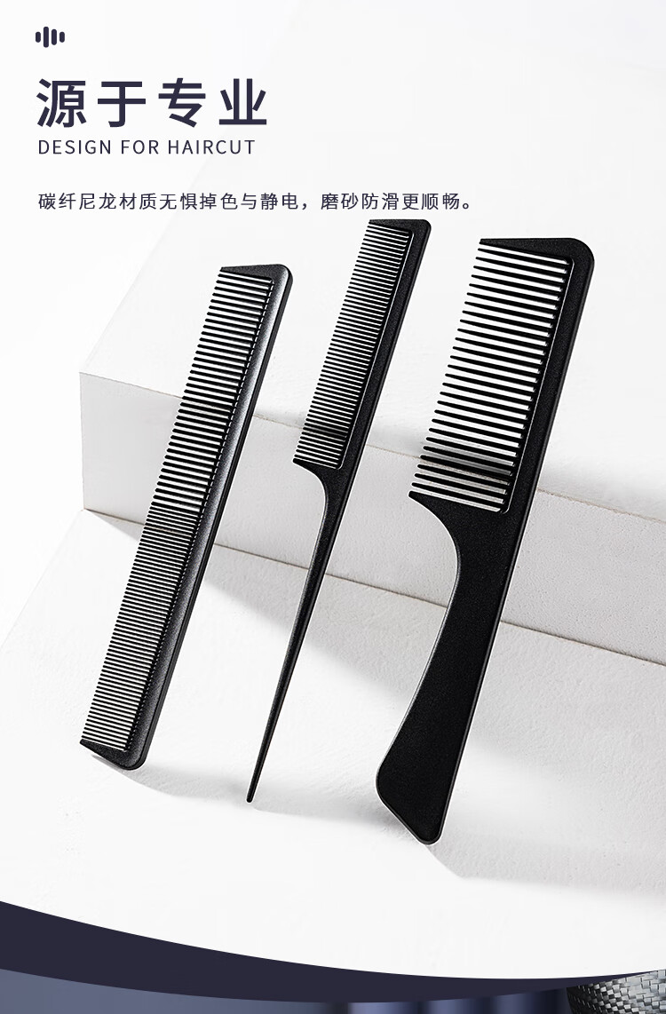 商品名称:秋小爽 三件套大号碳纤尼龙无惧静电 理发梳子女男士分发梳造型梳密齿梳家用塑料美发梳直发梳 N-6