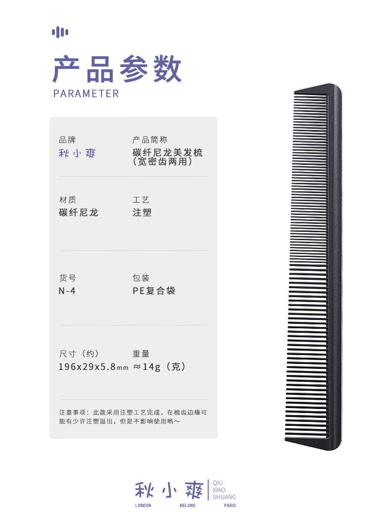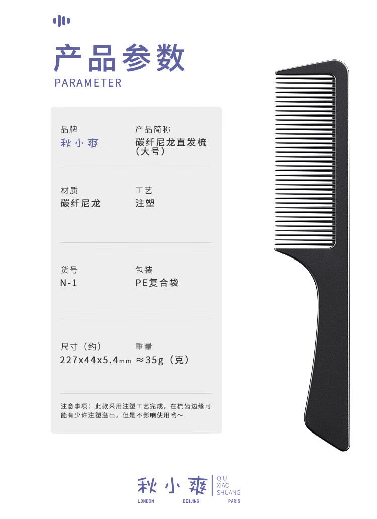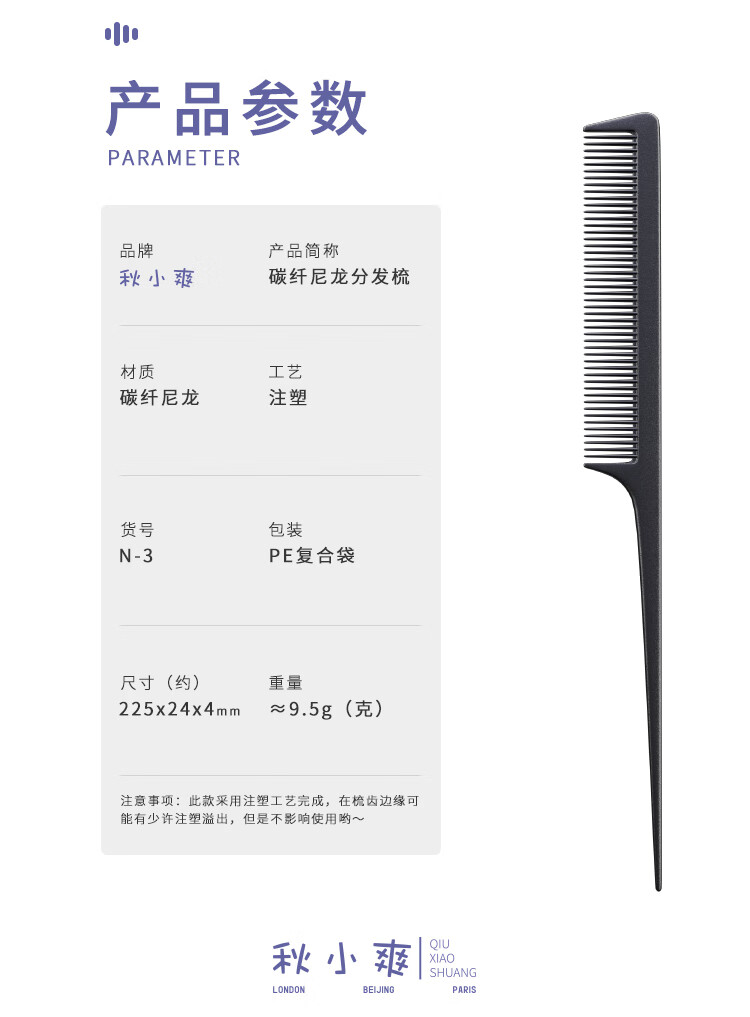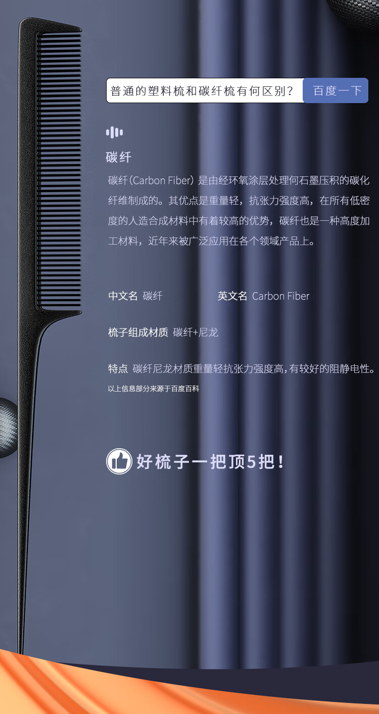 商品名称:秋小爽 三件套大号碳纤尼龙无惧静电 理发梳子女男士分发梳造型梳密齿梳家用塑料美发梳直发梳 N-6