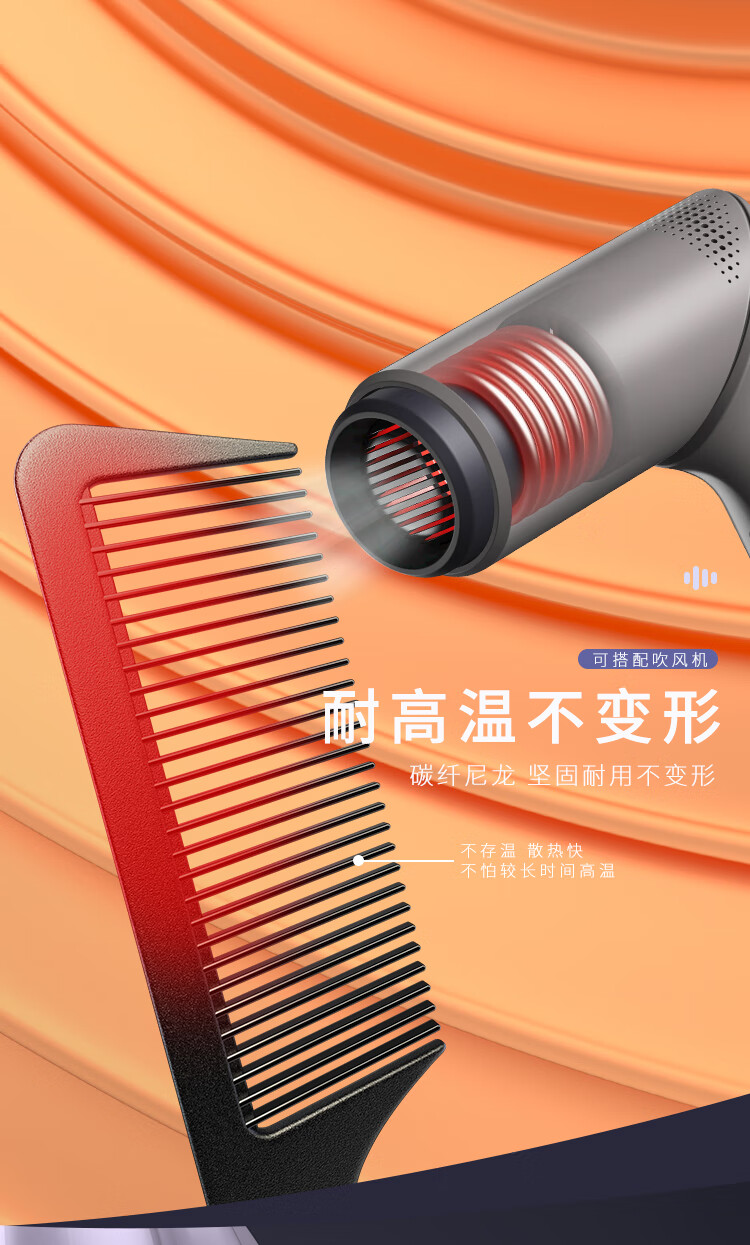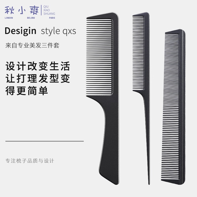 秋小爽 三件套大号碳纤尼龙无惧静电 理发梳子女男士分发梳造型梳密齿梳家用塑料美发梳直发梳 N-6