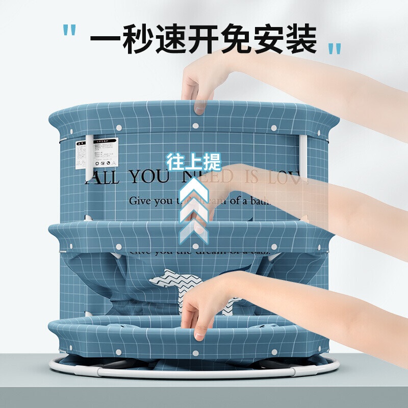 奔麦泡澡桶成人洗澡桶折叠浴桶家用婴儿童洗澡盆宝宝游泳桶洗澡神器 【免安装 加大】配保温盖+收纳袋