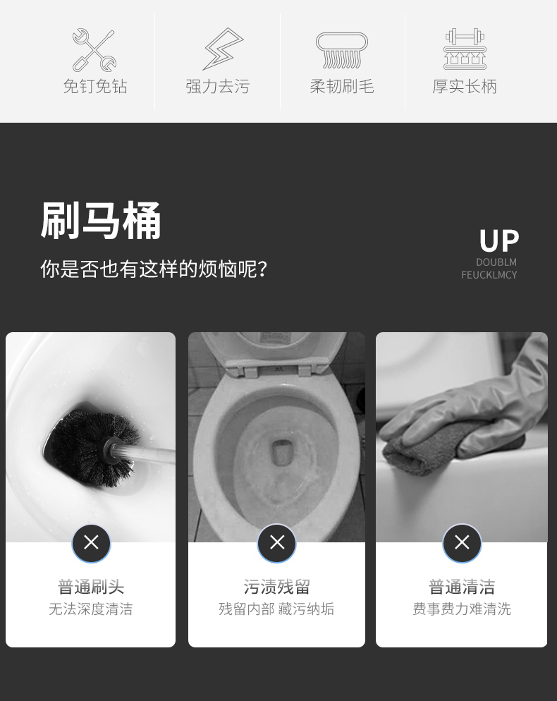商品名称:登比 无死角马桶刷 【带底座】清洁刷套装长柄洁厕刷 洗厕所蹲厕刷子座便器蹲便器卫生间浴室清洁刷子壁挂