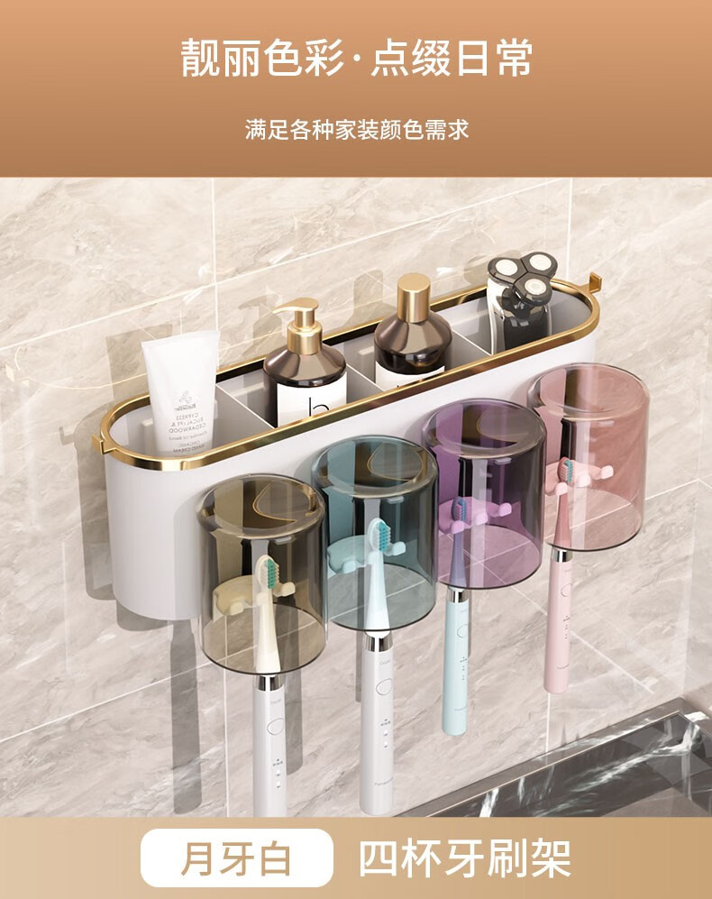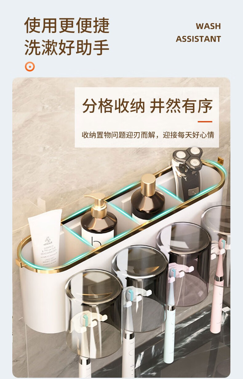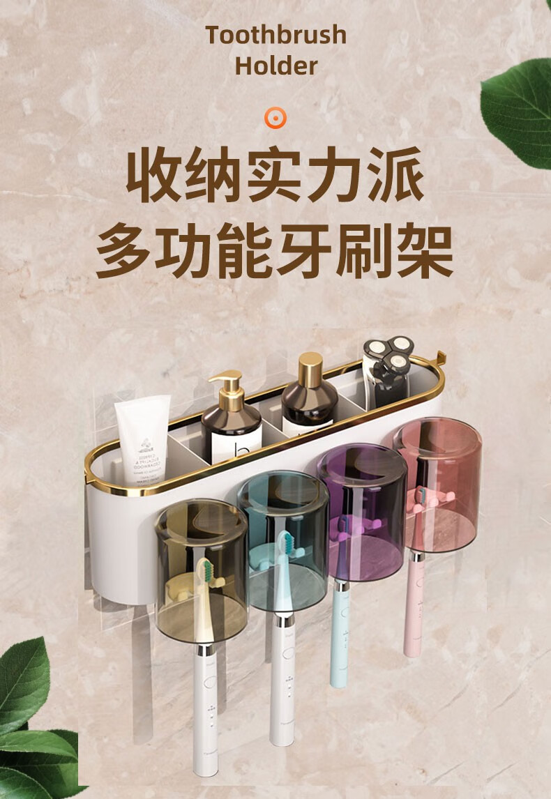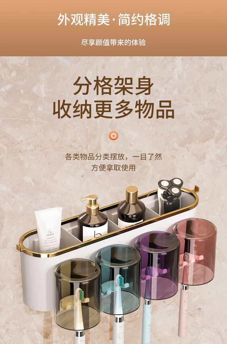 商品名称:囍器牙刷置物架牙刷架漱口杯免打孔壁挂式电动牙刷架卫生间置物架 多功能牙刷架【四口之家】带杯子