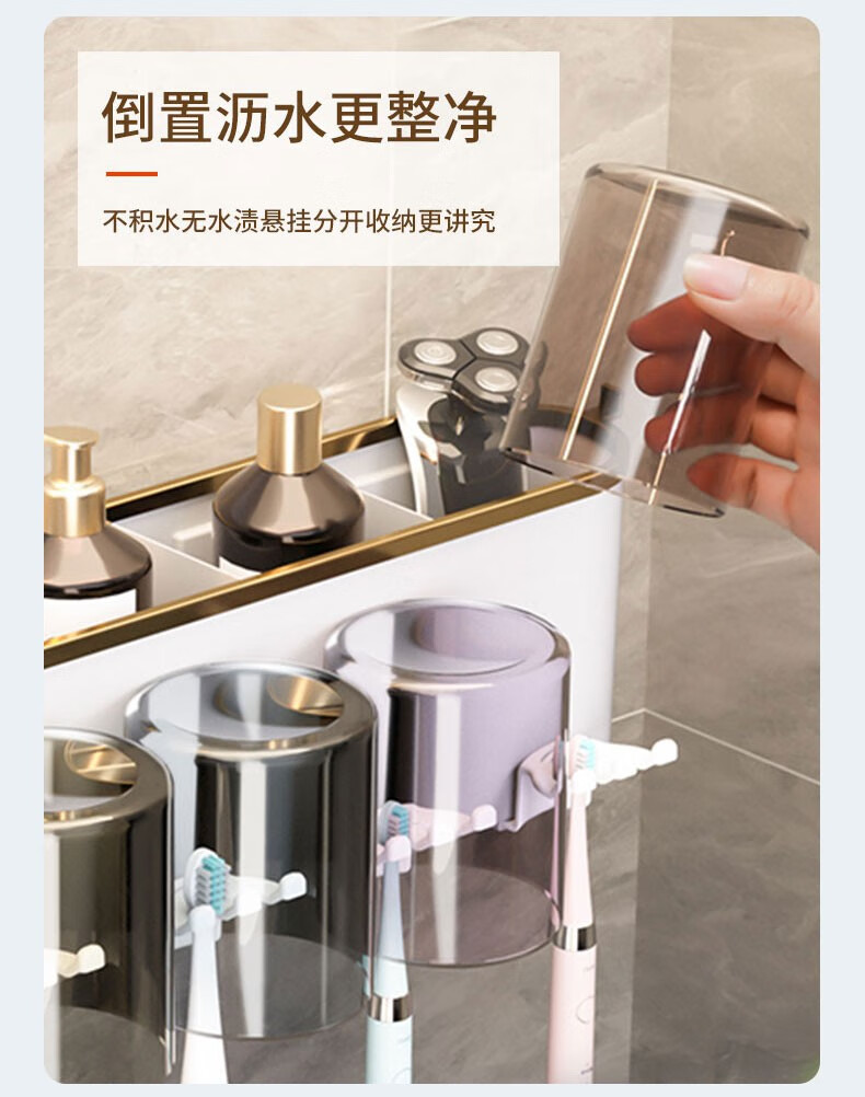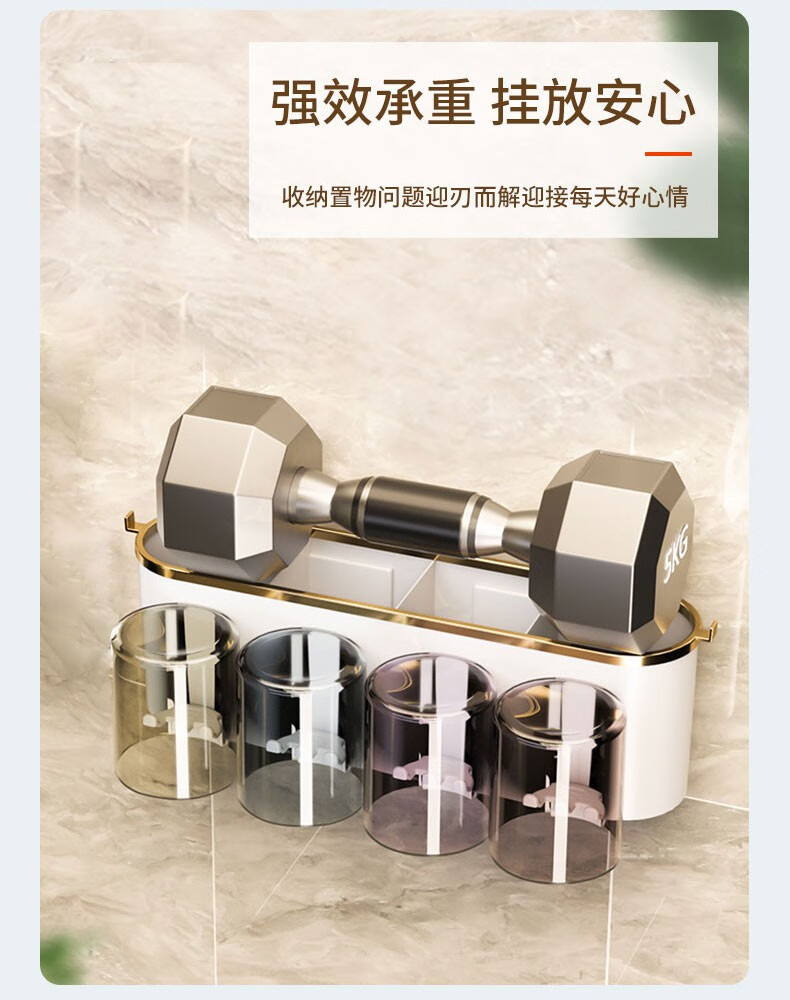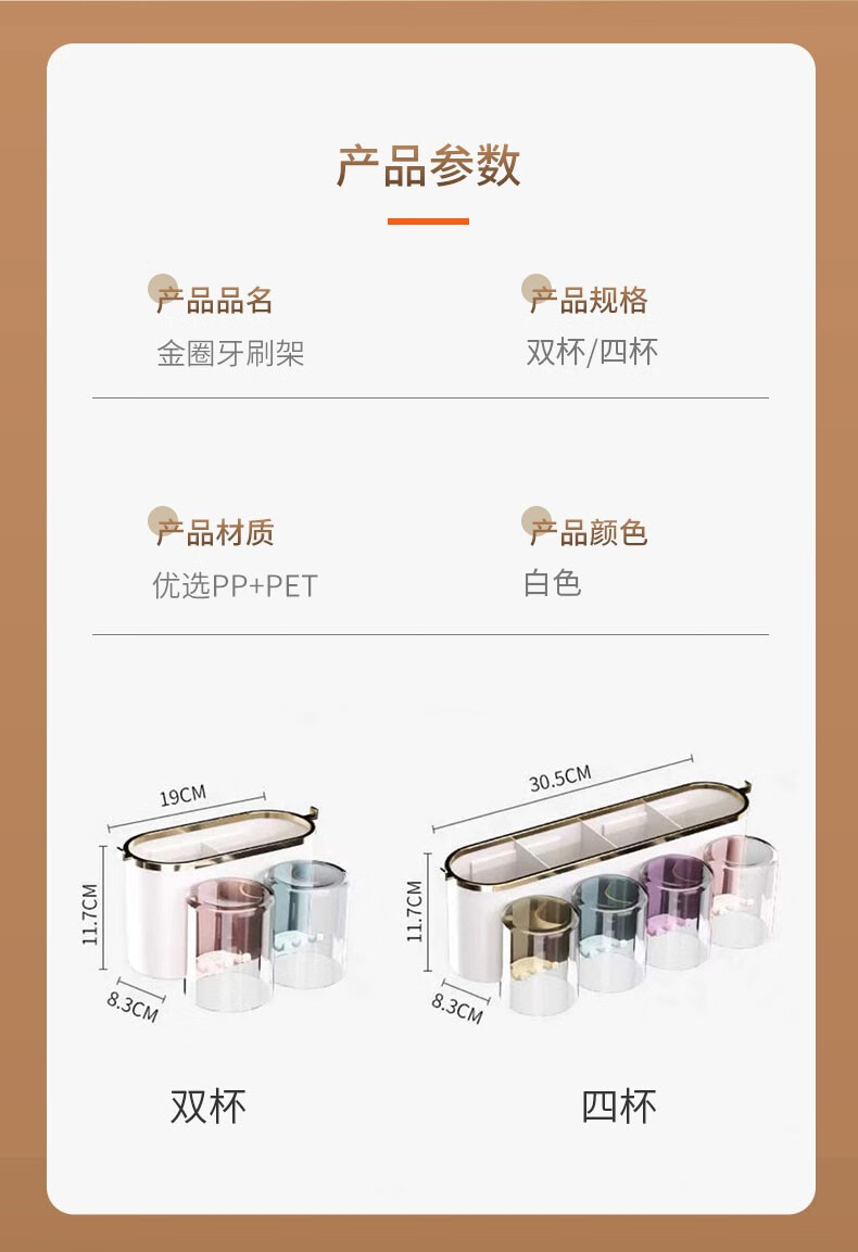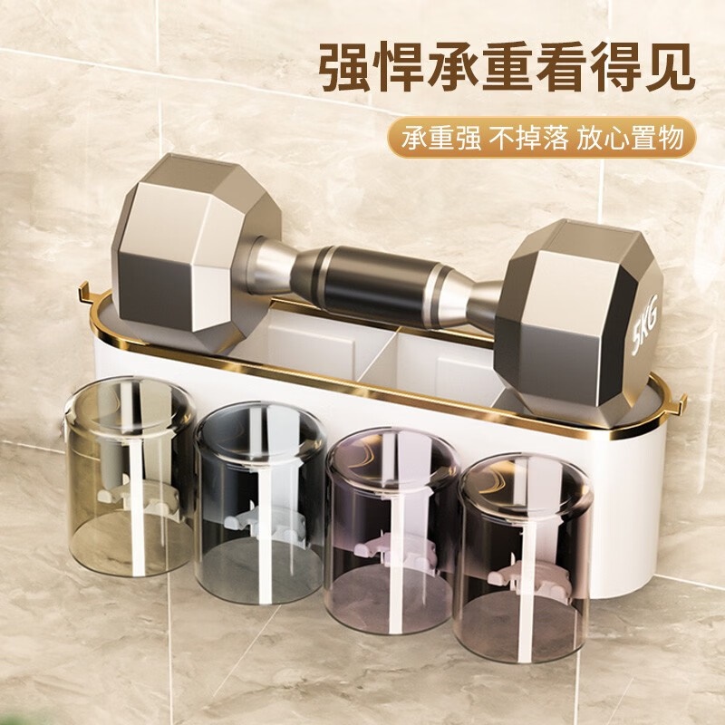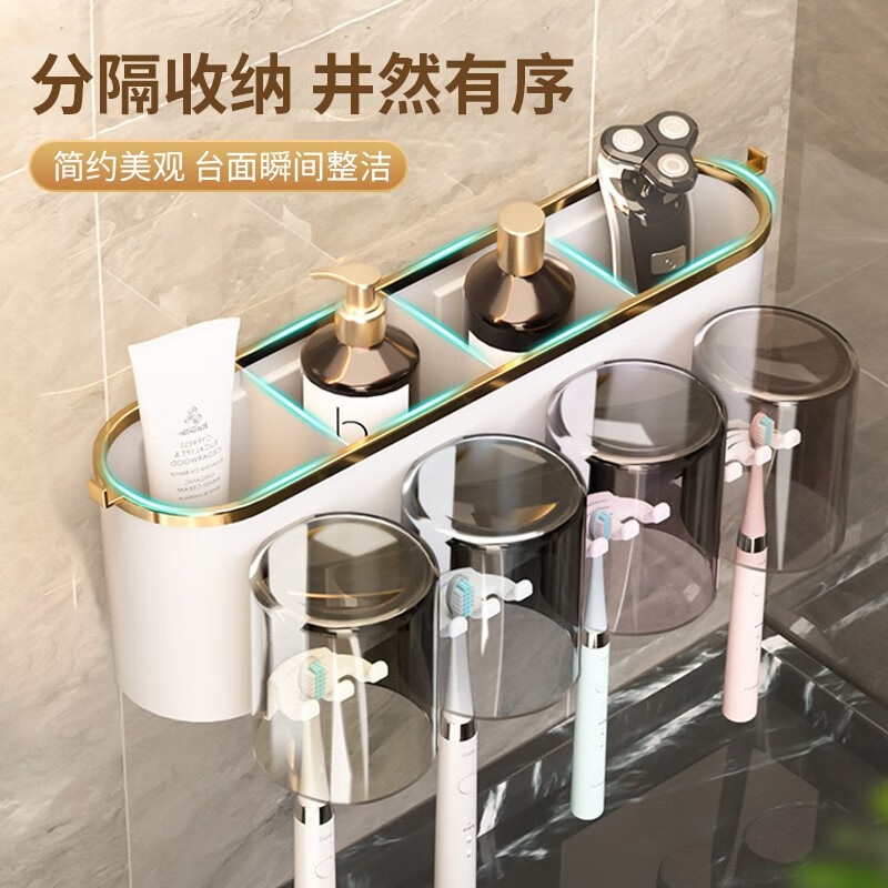商品名称:囍器牙刷置物架牙刷架漱口杯免打孔壁挂式电动牙刷架卫生间置物架 多功能牙刷架【四口之家】带杯子