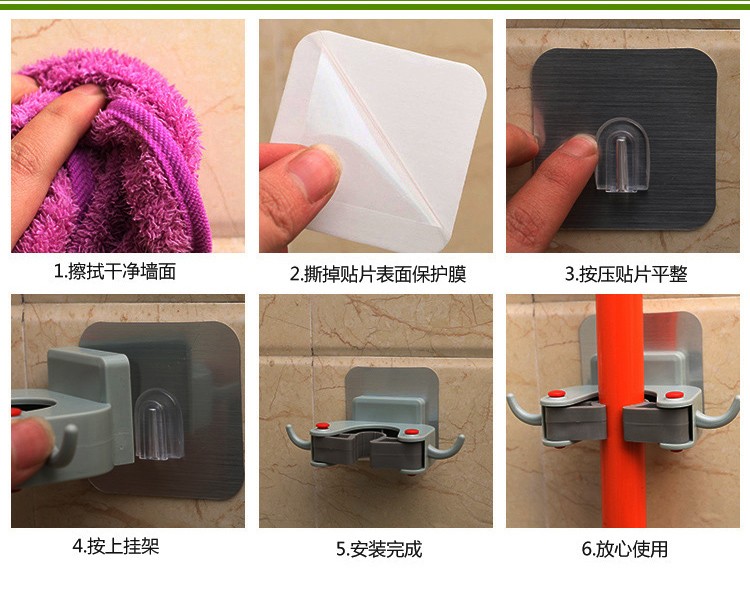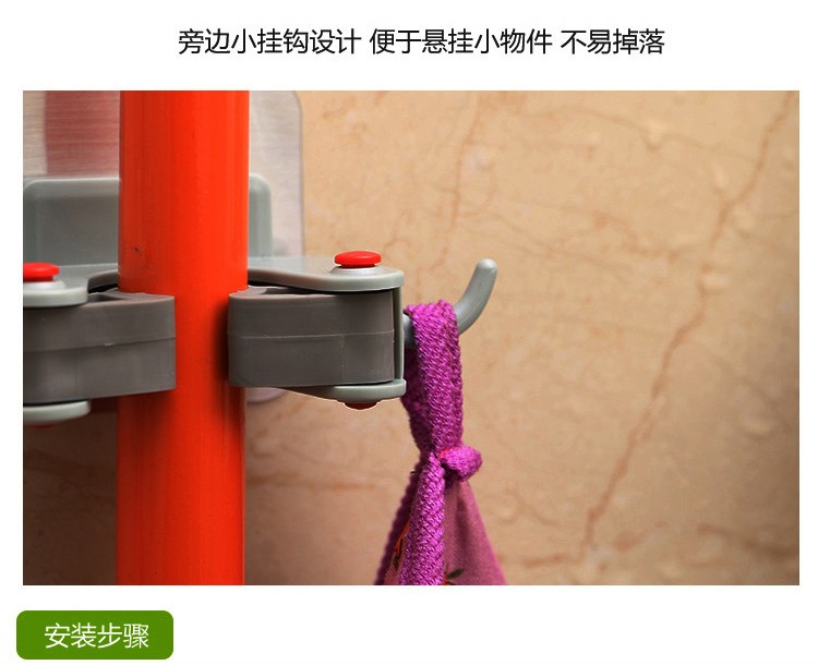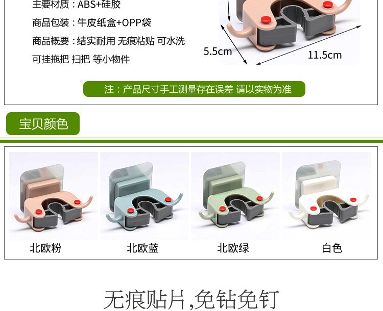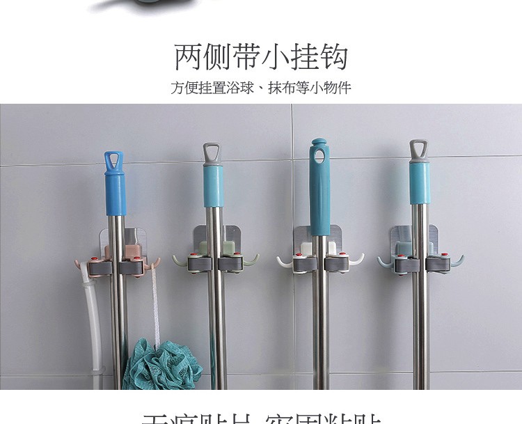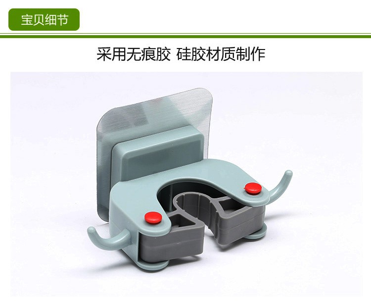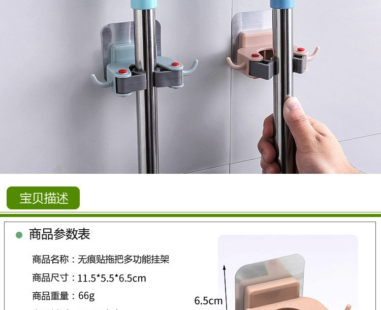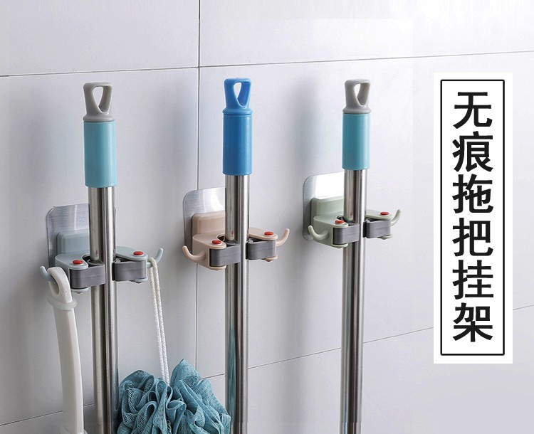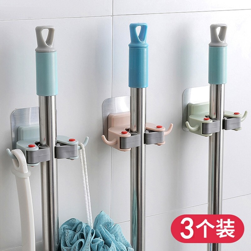 商品名称:季萌拖把固定卡扣扫把夹壁挂式拖把夹免打孔厨房卫生间浴室拖把架 3个装(颜色随机可备注)