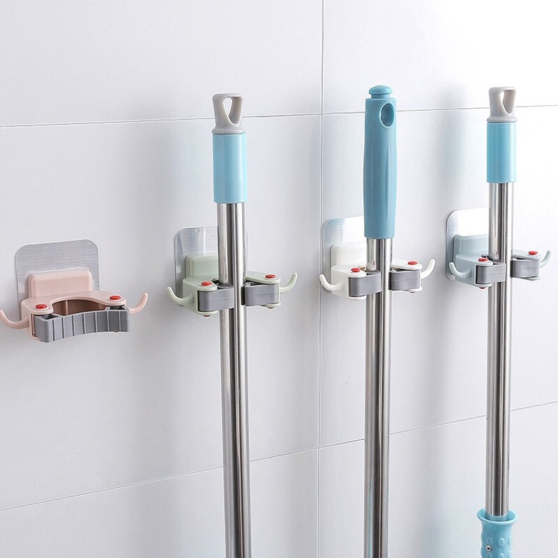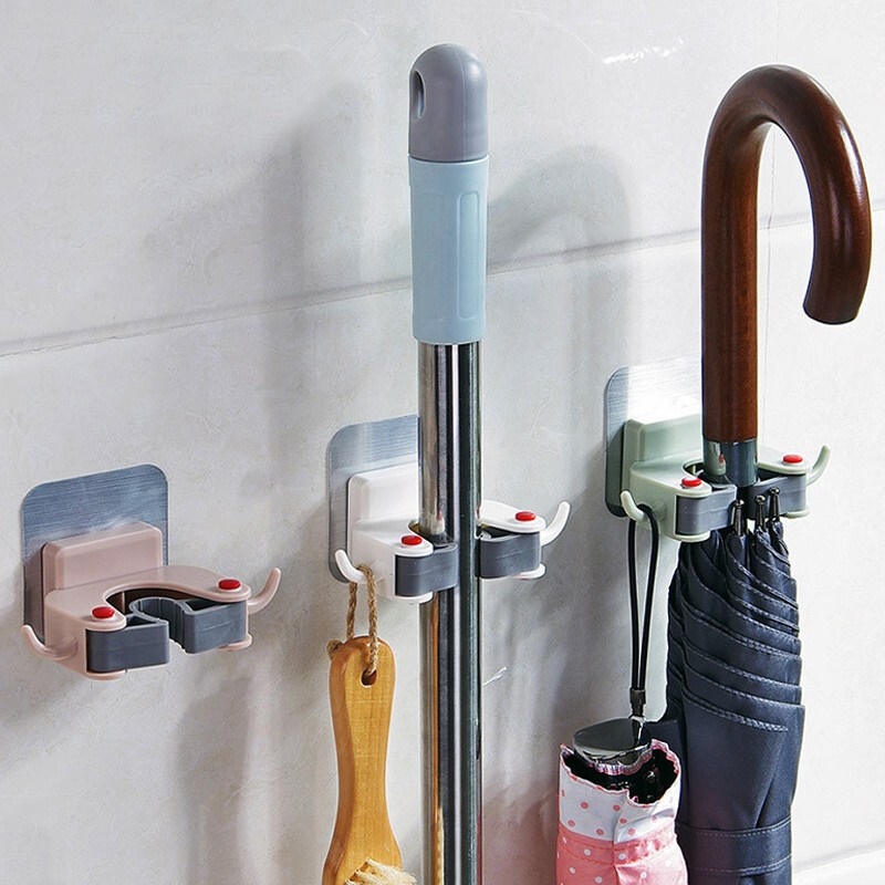 季萌拖把固定卡扣扫把夹壁挂式拖把夹免打孔厨房卫生间浴室拖把架 3个装(颜色随机可备注)