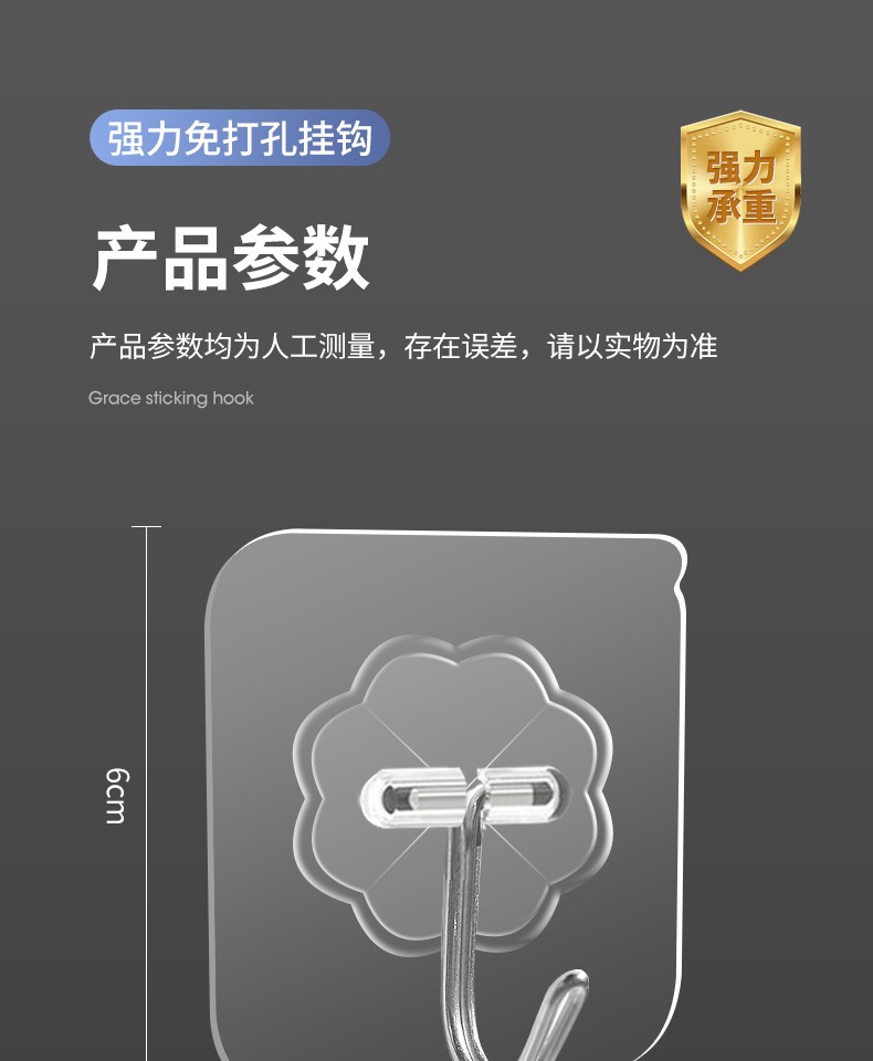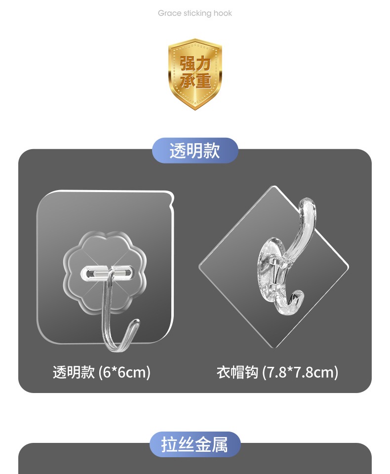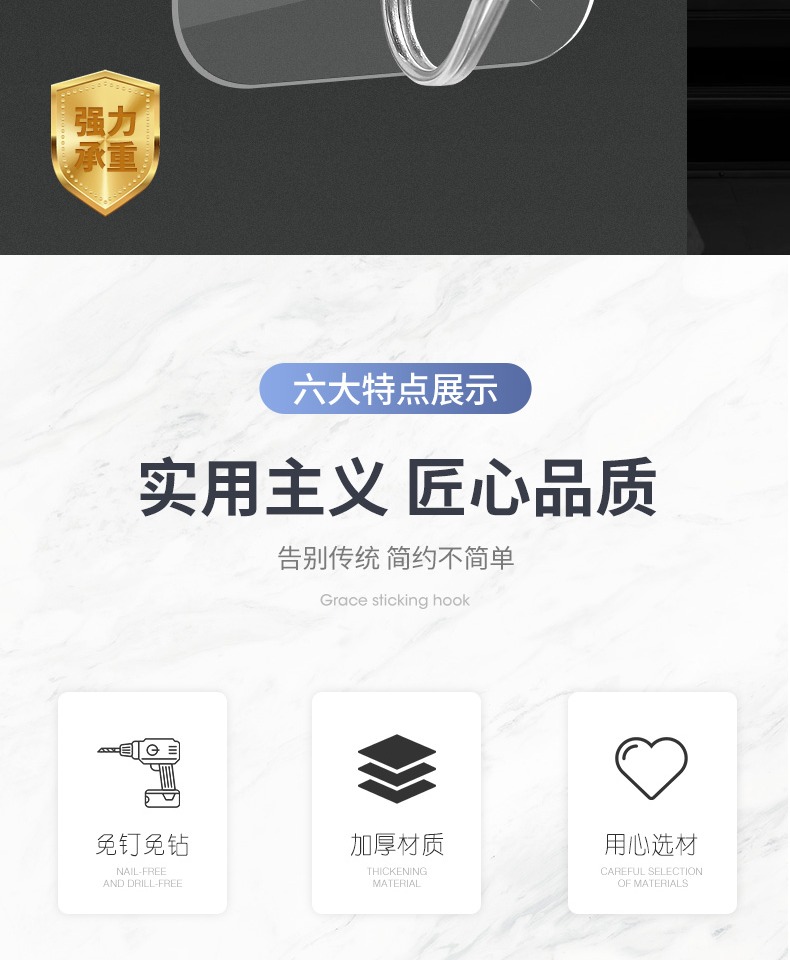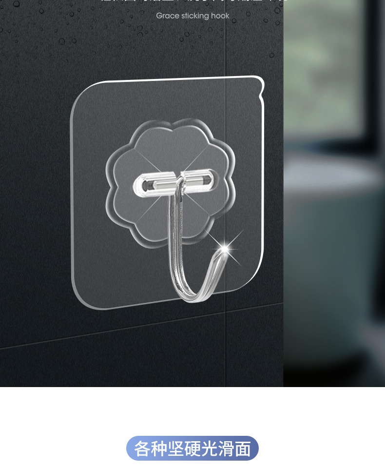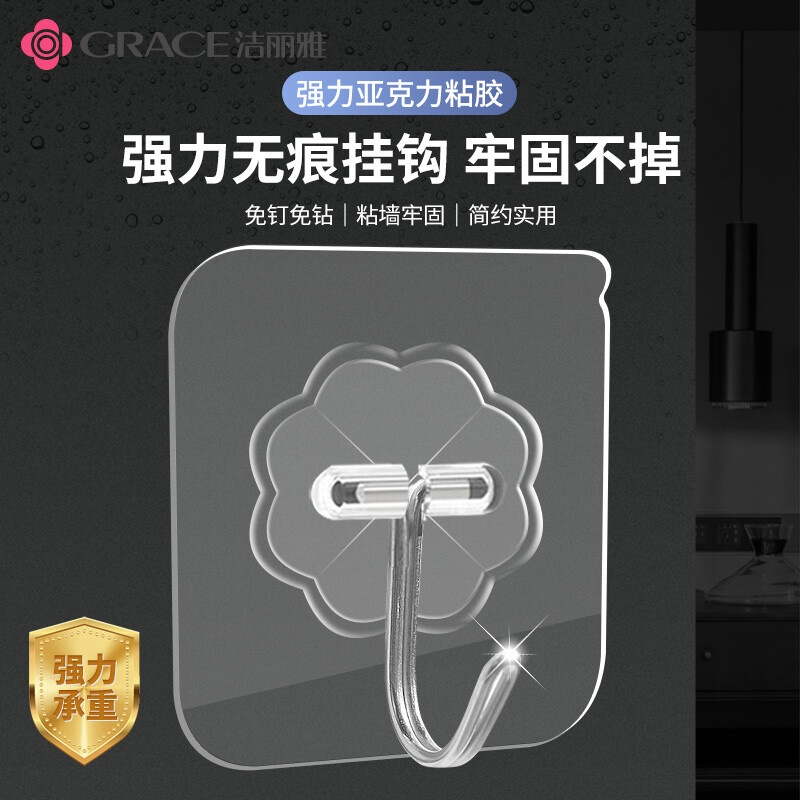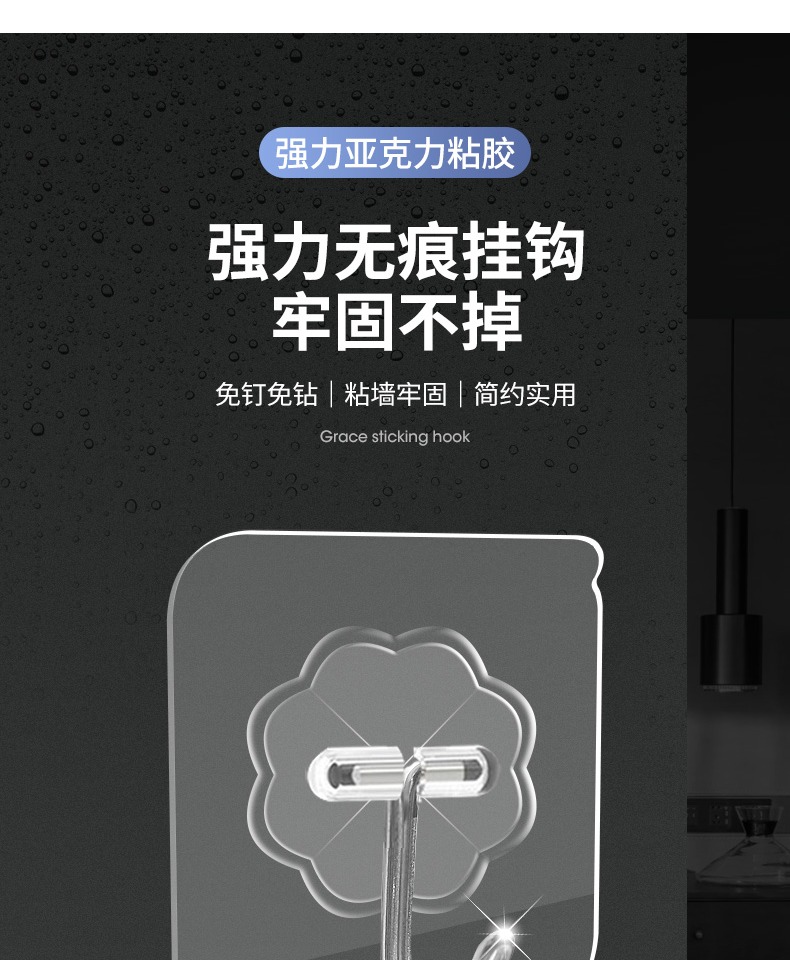 洁丽雅挂钩加厚透明粘钩强力粘胶20个装 加厚透明款【20个装】
