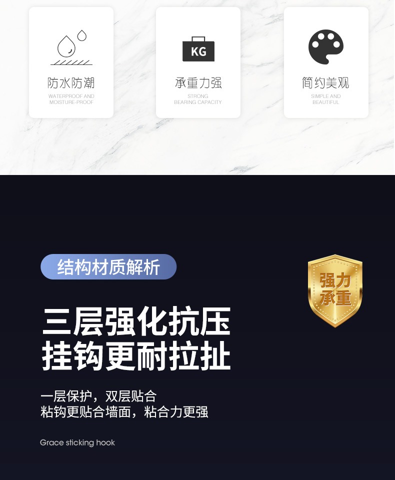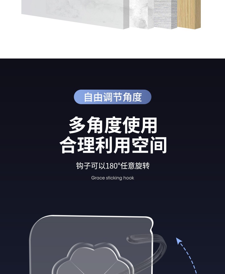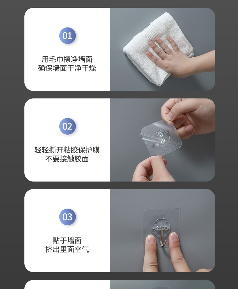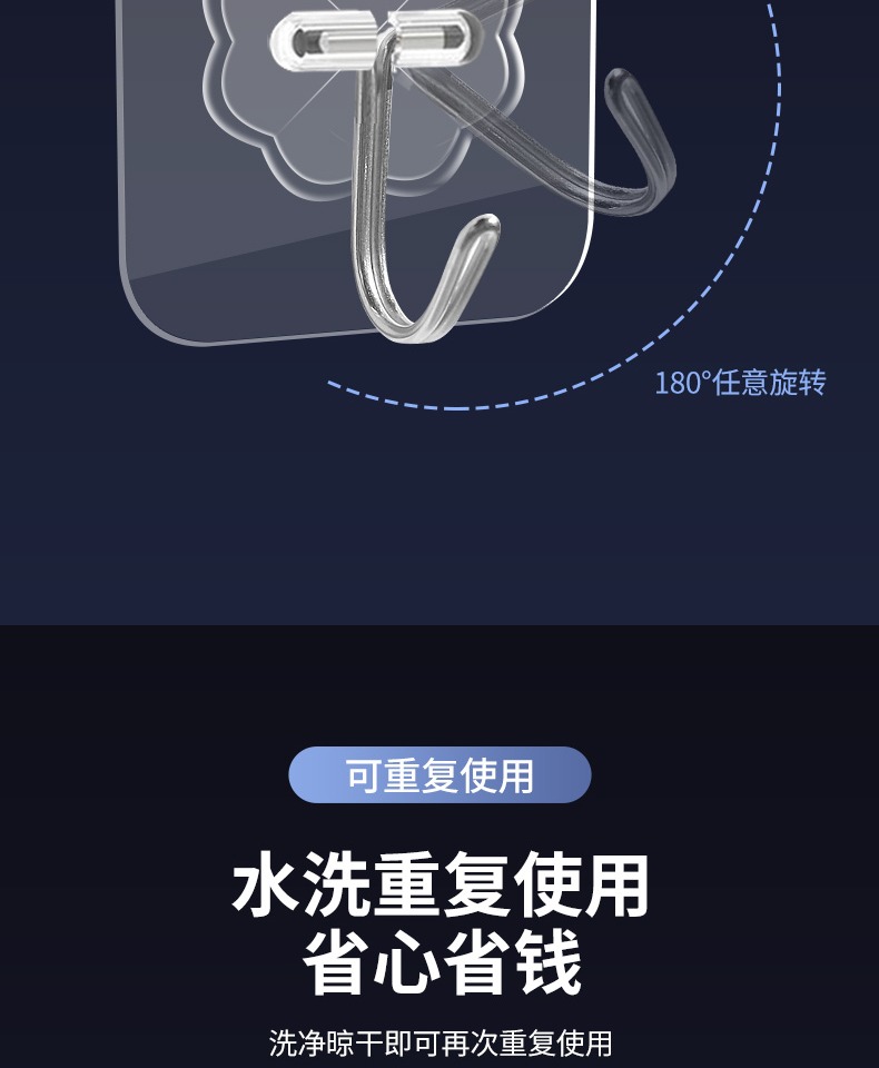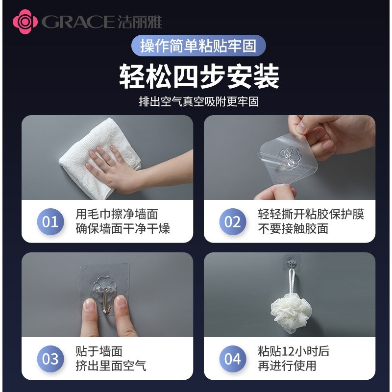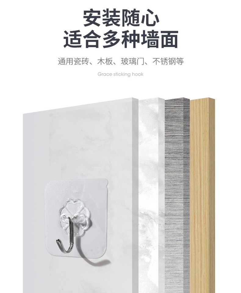 洁丽雅挂钩加厚透明粘钩强力粘胶20个装 加厚透明款【20个装】