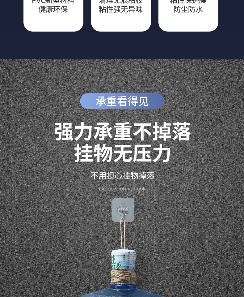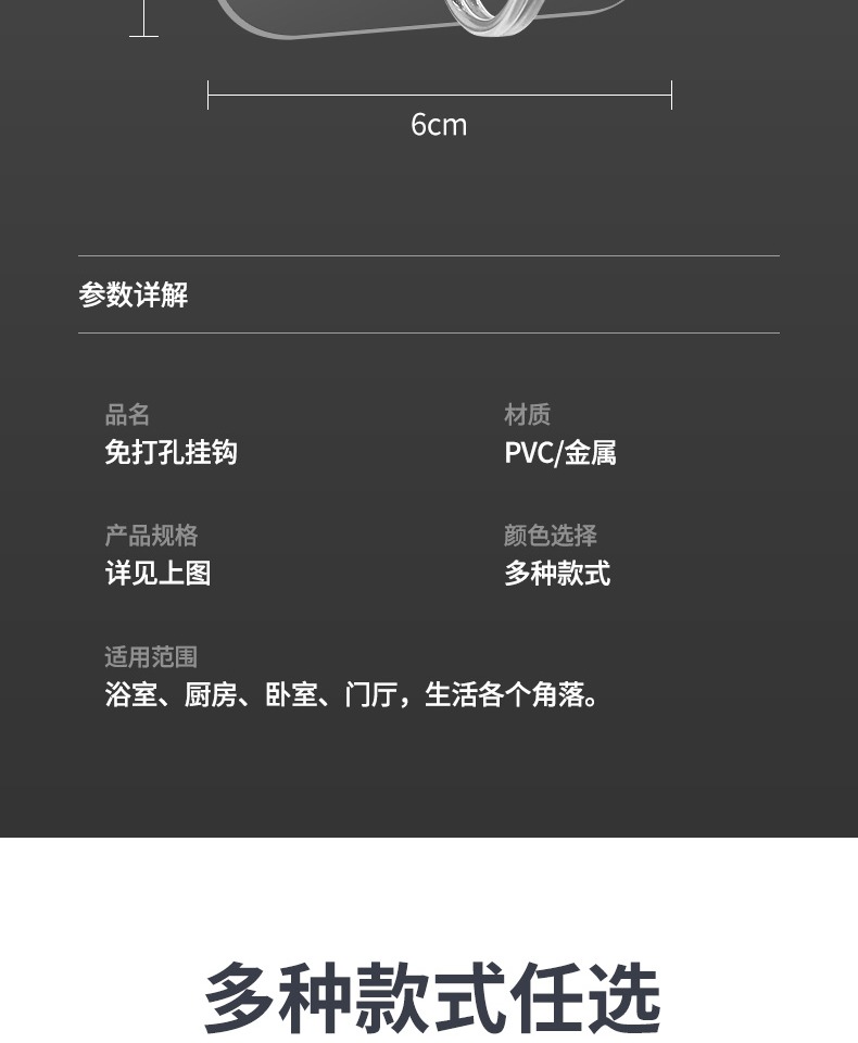 商品名称:洁丽雅挂钩加厚透明粘钩强力粘胶20个装 加厚透明款【20个装】
