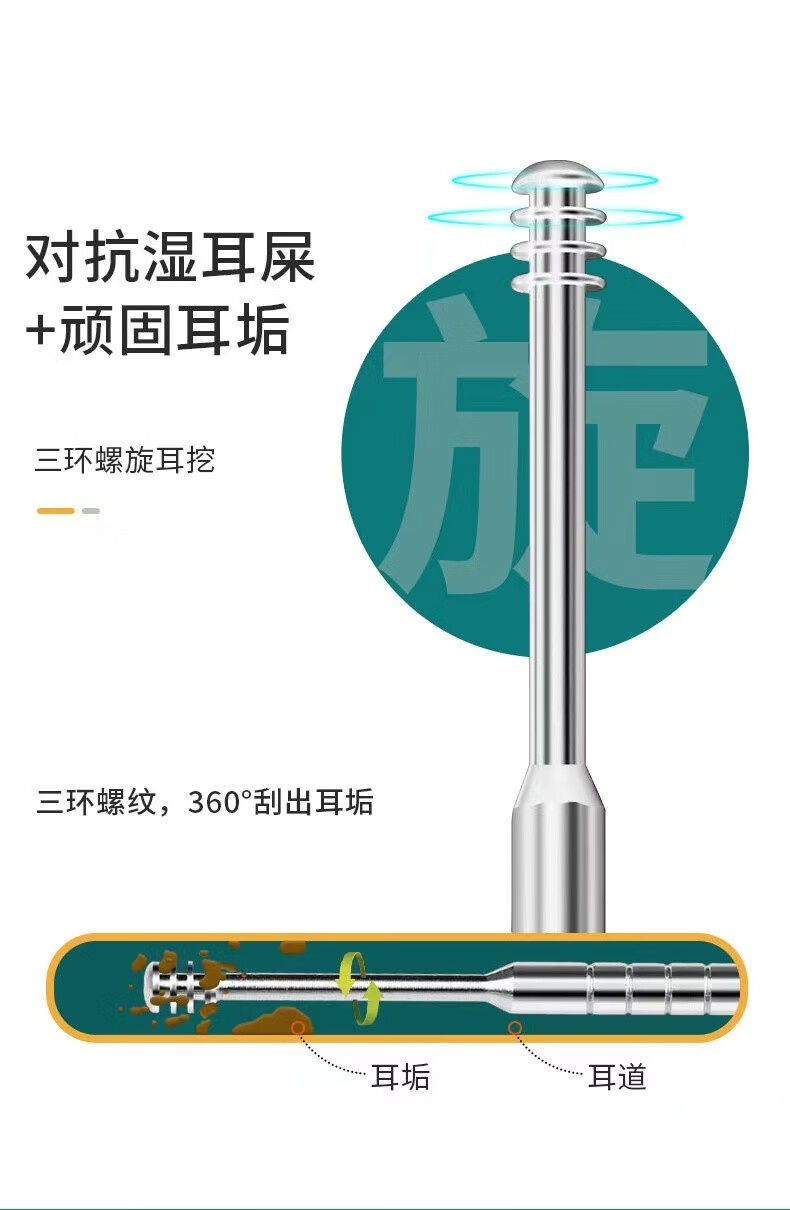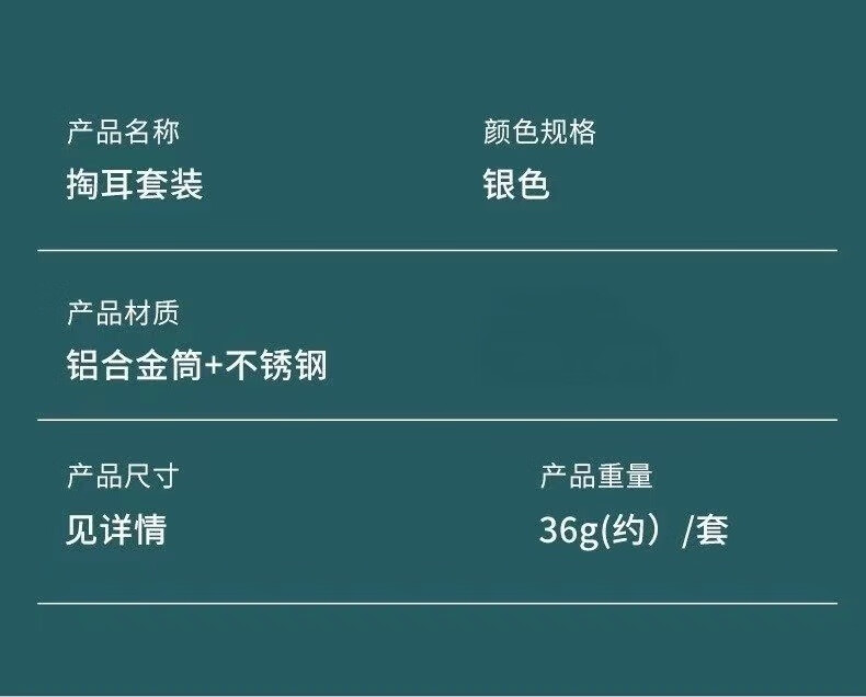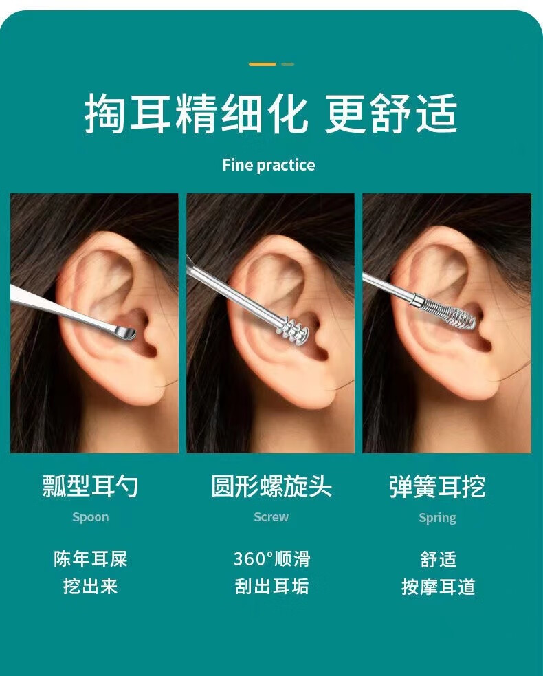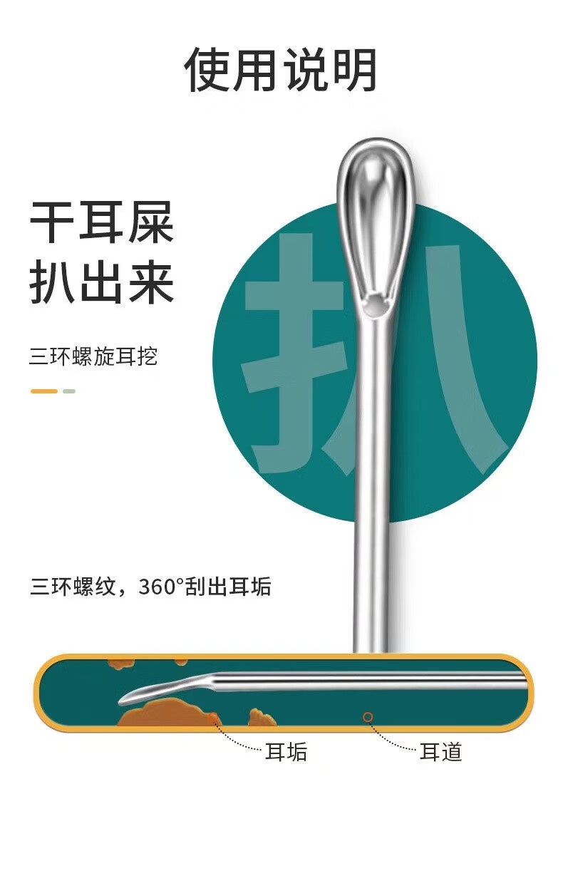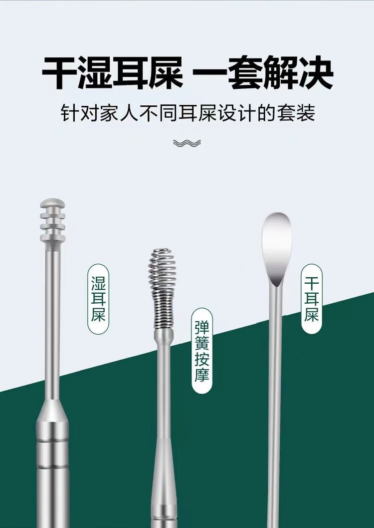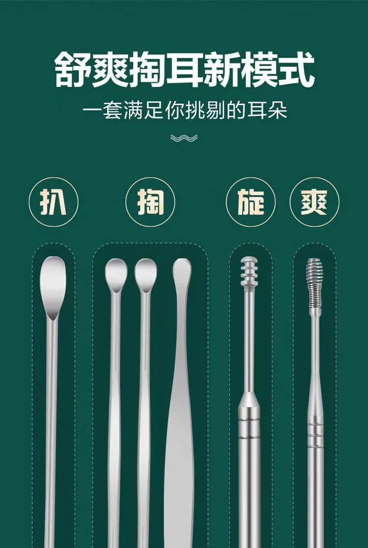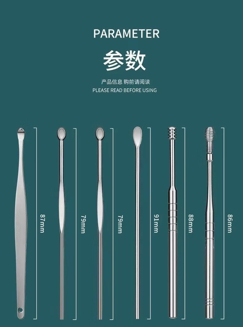 商品名称:中麒 挖耳勺套装 多功能不锈钢掏耳勺便携挖耳螺旋挖耳朵专业采耳棒扣耳工具套装家用耳屎清洁 直筒六件套