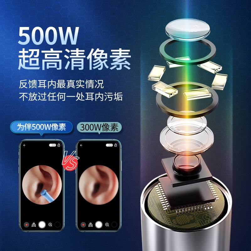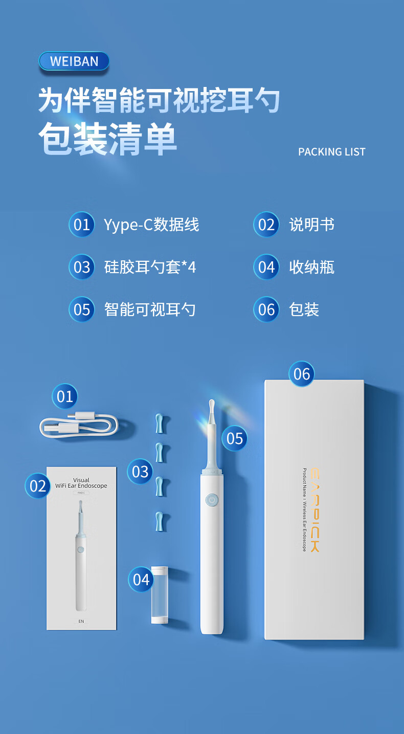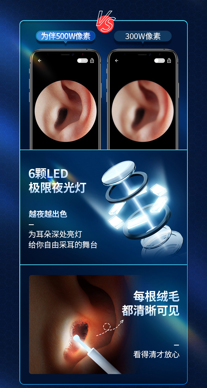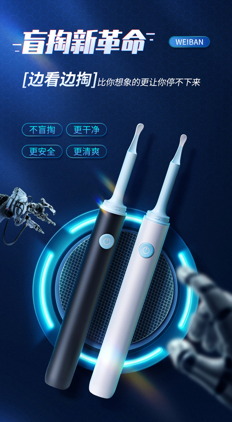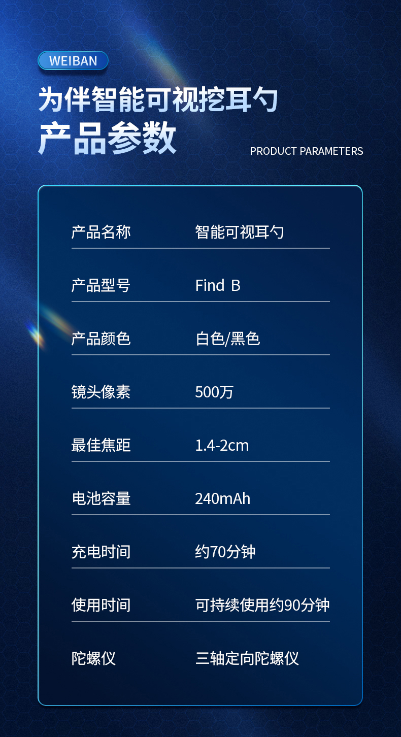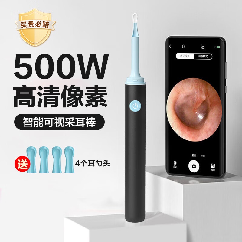 商品名称:为伴 可视挖耳勺掏耳勺掏耳朵神器儿童发光挖耳勺高清无线内窥镜工具套装安卓苹果通用 炫酷黑