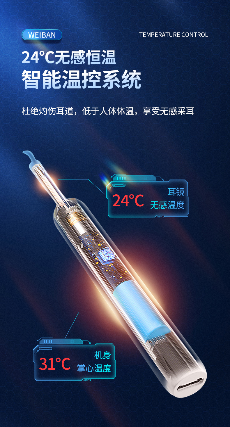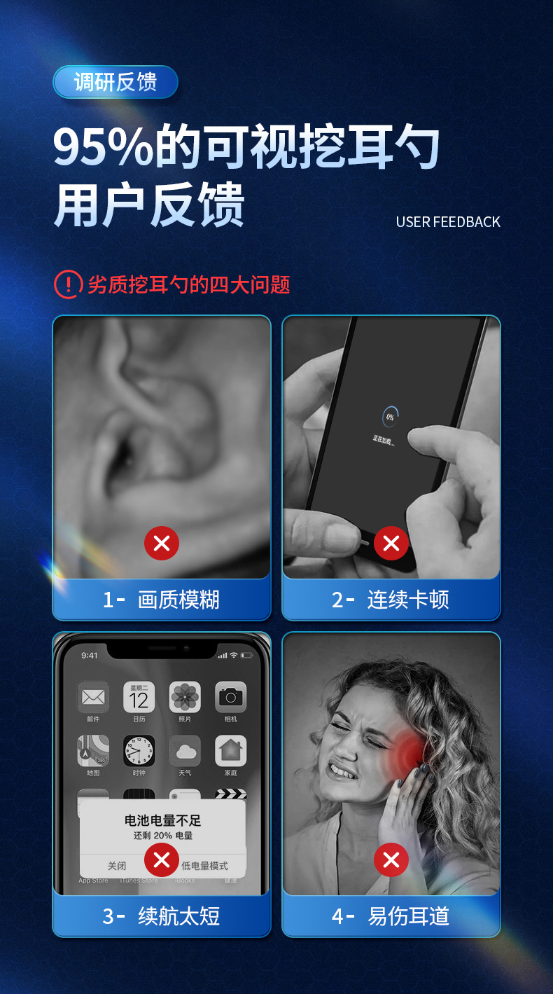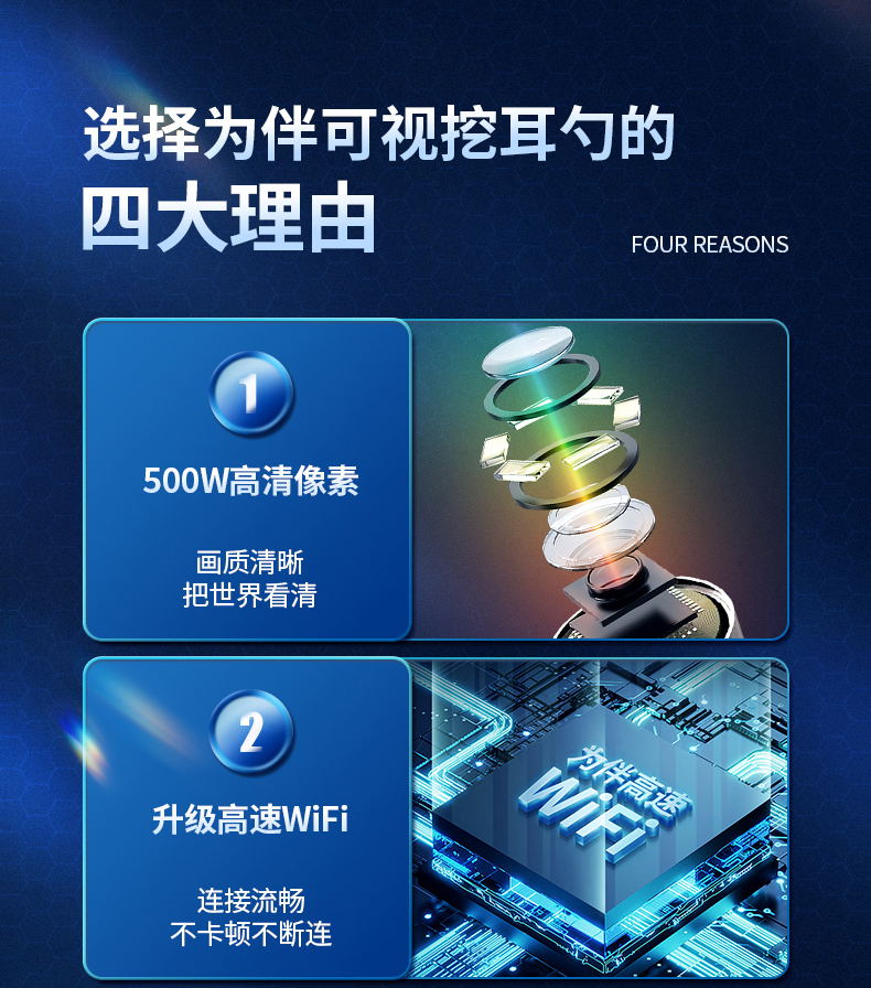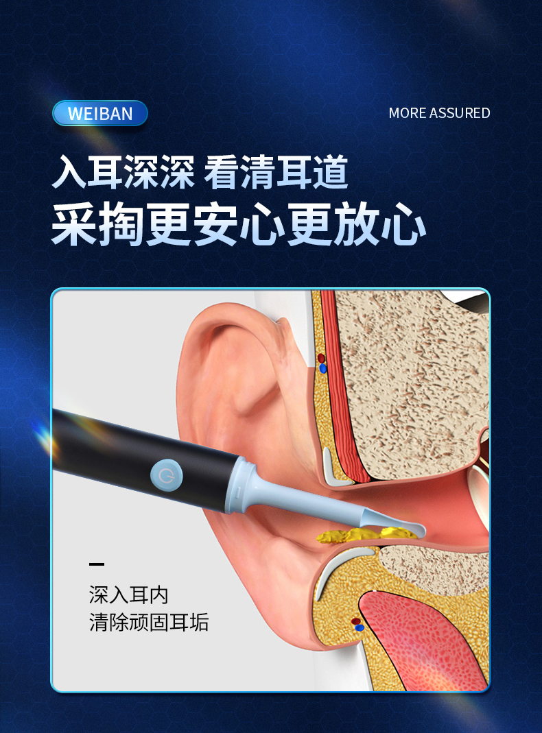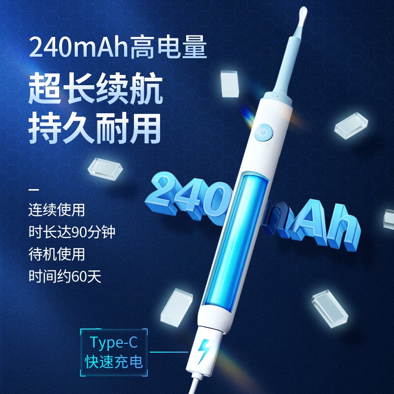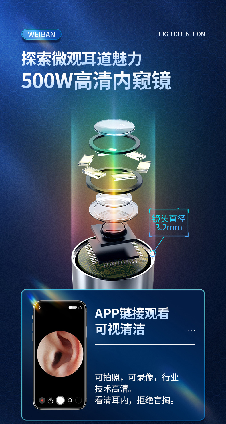 商品名称:为伴 可视挖耳勺掏耳勺掏耳朵神器儿童发光挖耳勺高清无线内窥镜工具套装安卓苹果通用 炫酷黑