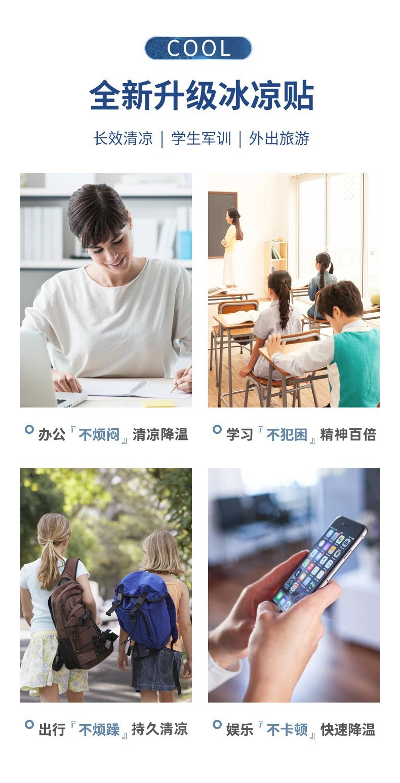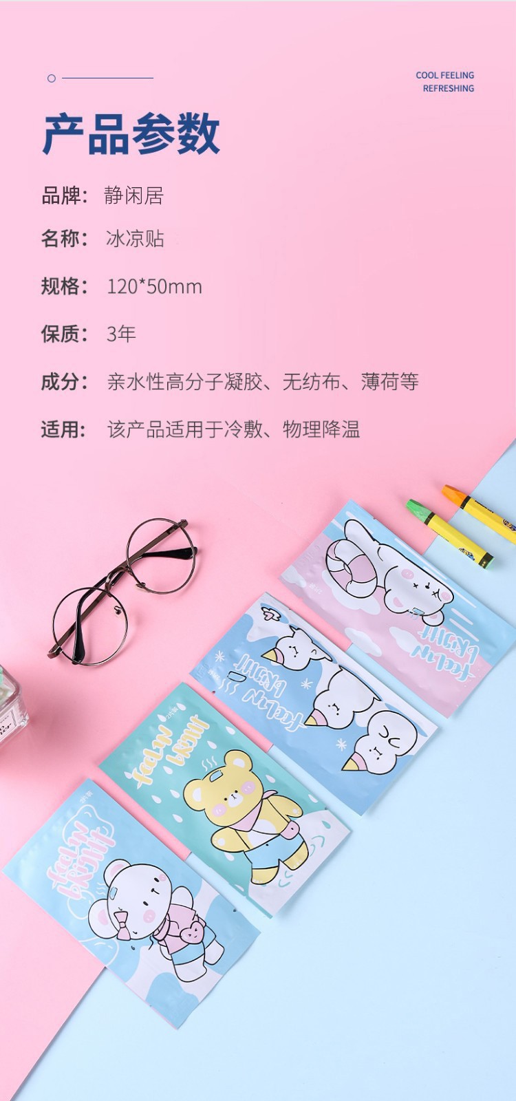 商品名称:静闲居 冰凉贴降温贴学生夏季军训清凉贴成人避暑消暑冰贴儿童降暑神器 冰贴60片装