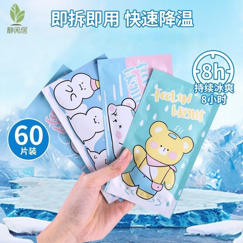静闲居 冰凉贴降温贴学生夏季军训清凉贴成人避暑消暑冰贴儿童降暑神器 冰贴60片装