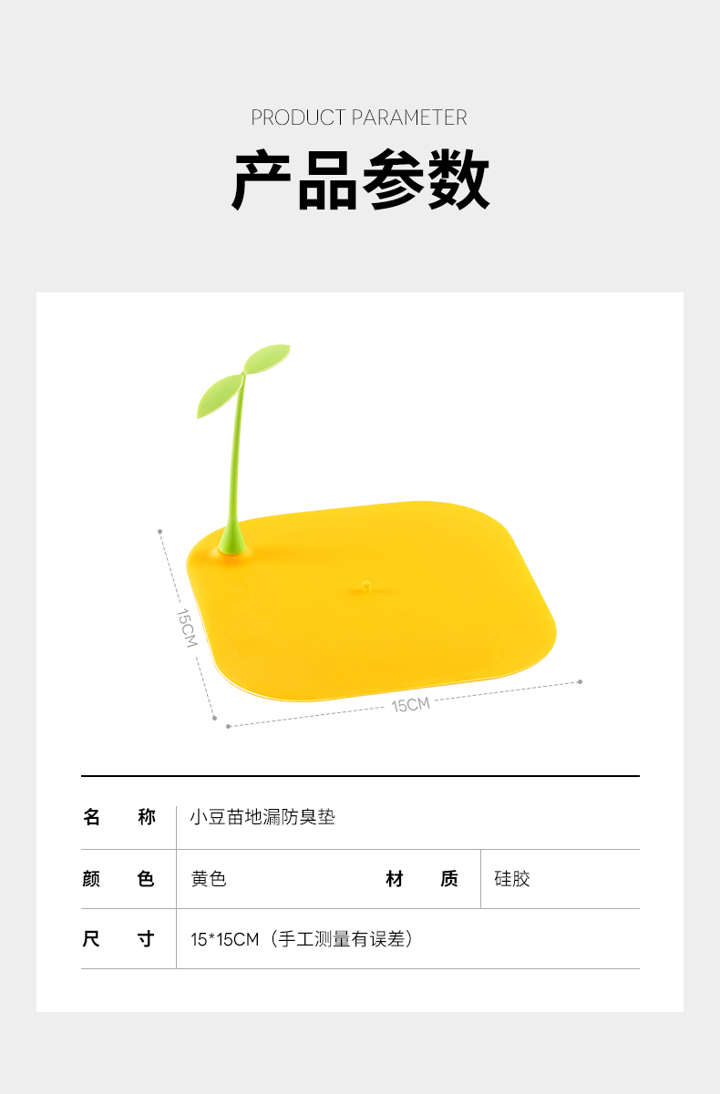 商品名称:JAJALIN 地漏防臭盖2片装 下水道卫生间浴室水槽防虫防臭封口盖硅胶垫片 白+黄(颜色随机)