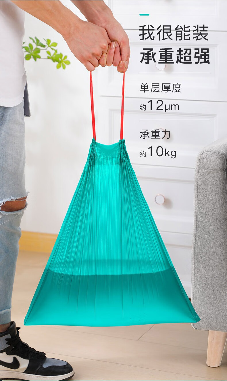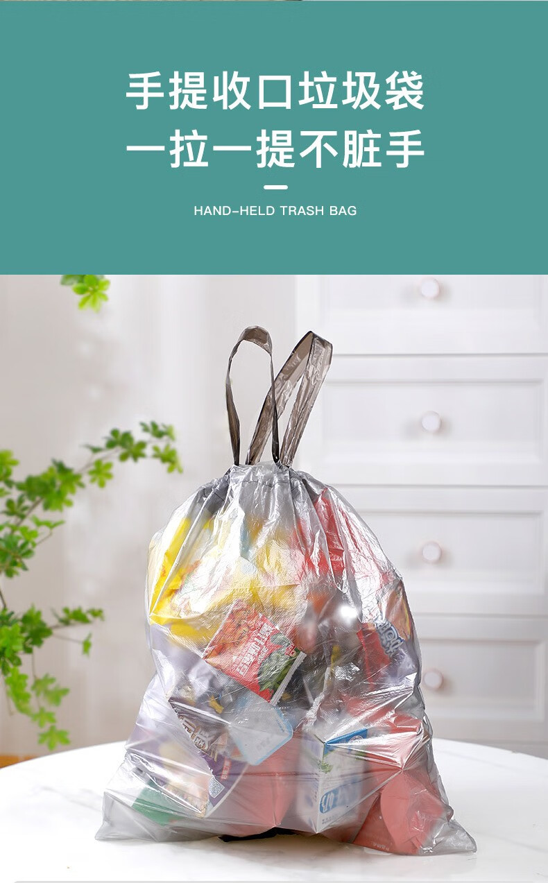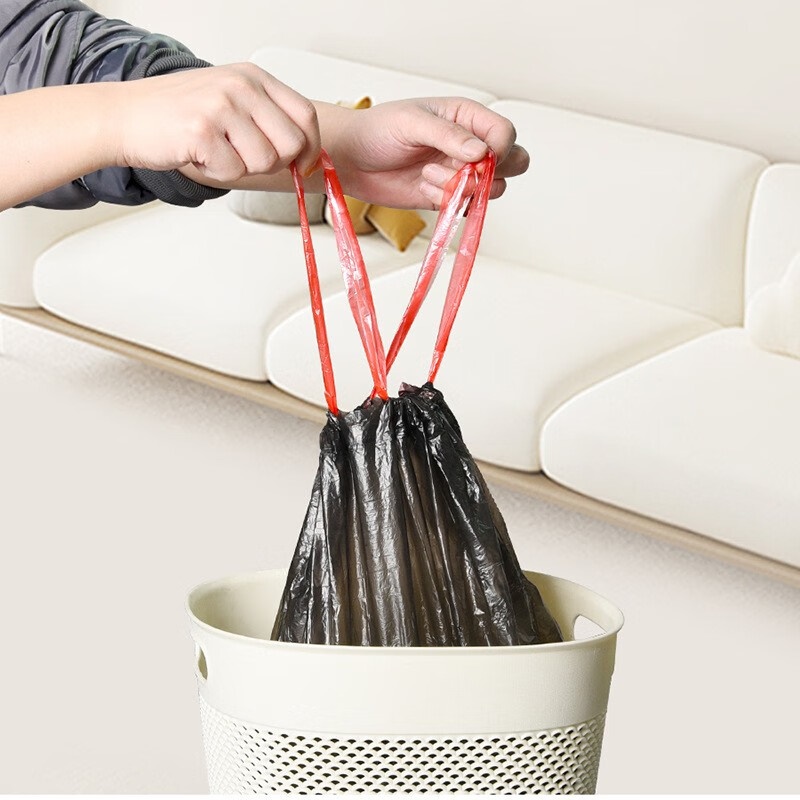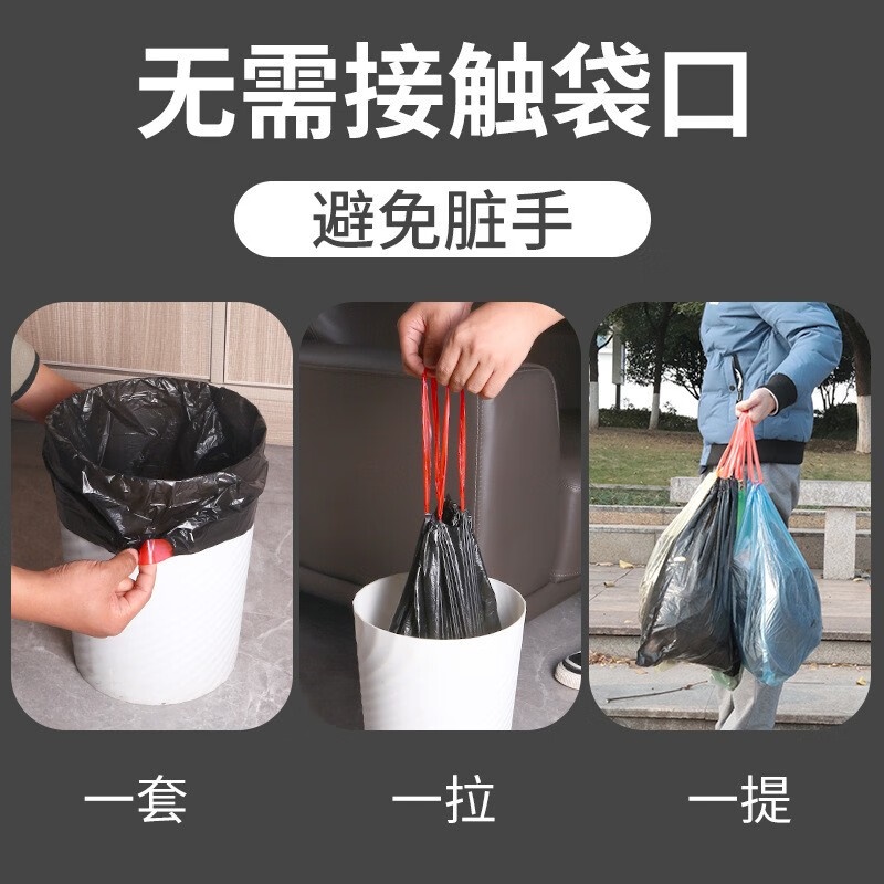 商品名称:聚心尚品 抽绳垃圾袋家用实惠装大号收口加厚塑料袋小手提式拉绳束口袋 彩色【3卷=45只】