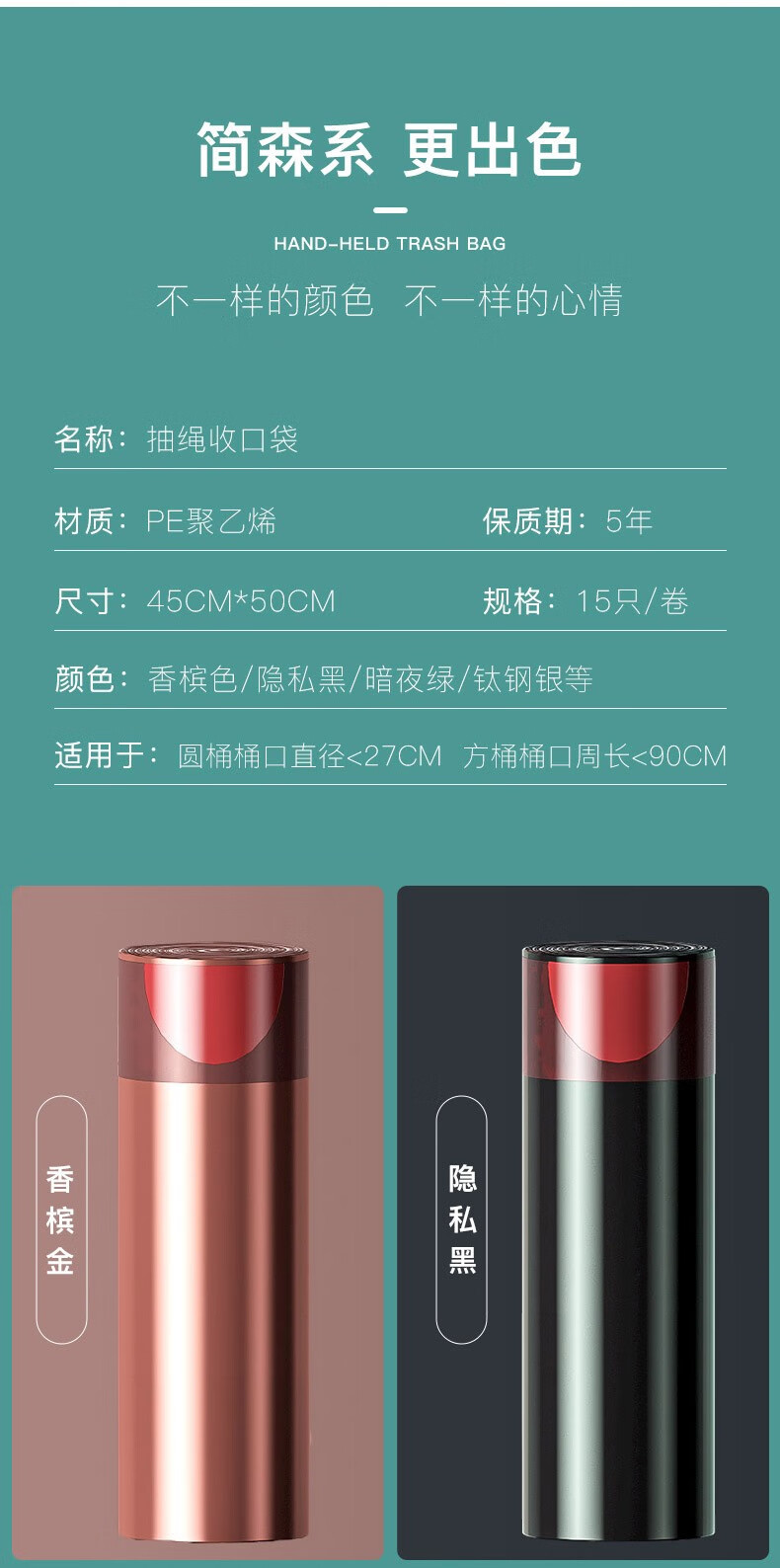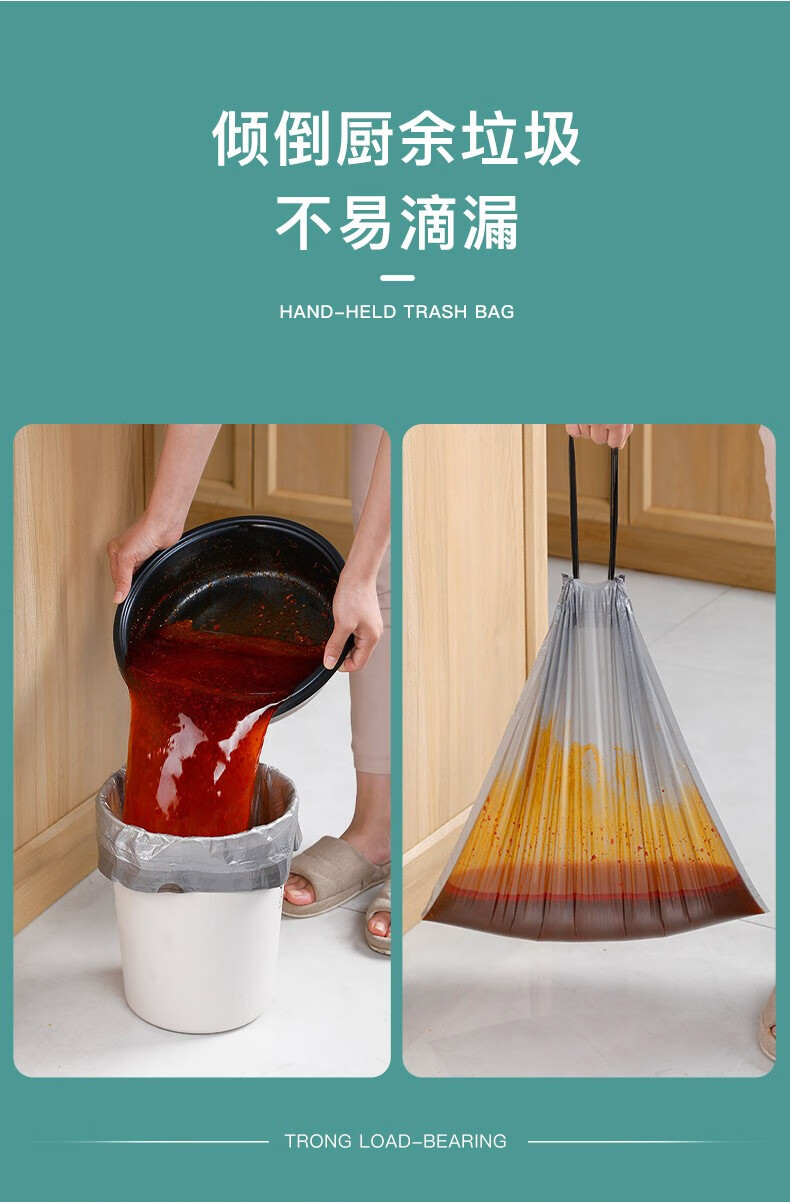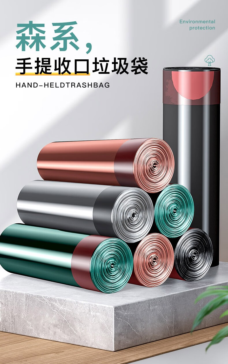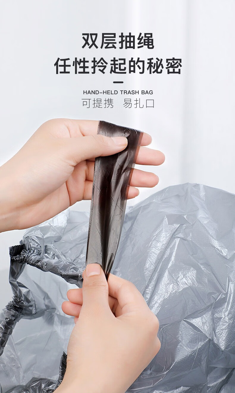 商品名称:聚心尚品 抽绳垃圾袋家用实惠装大号收口加厚塑料袋小手提式拉绳束口袋 彩色【3卷=45只】