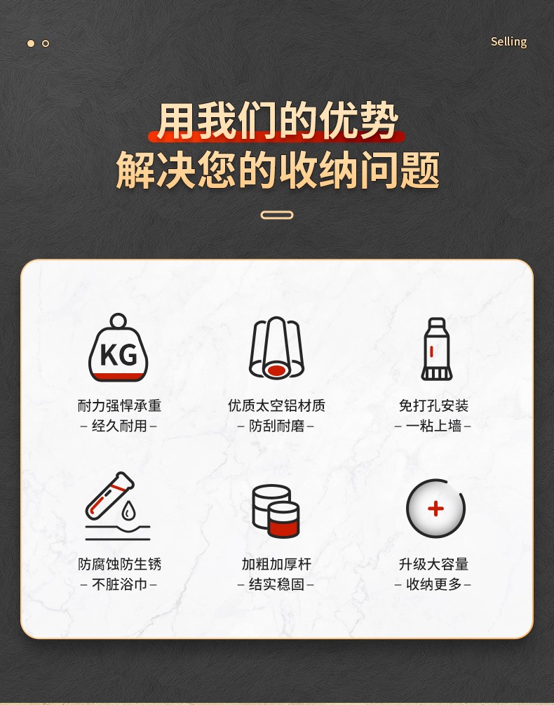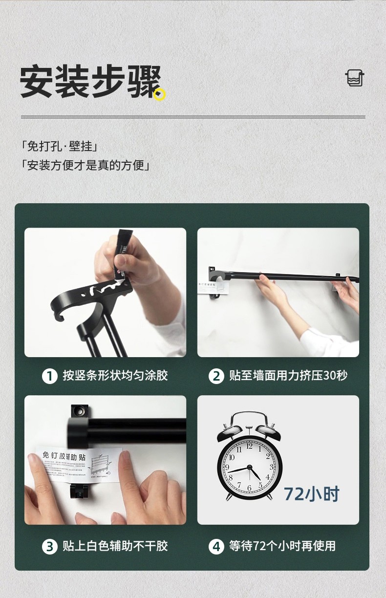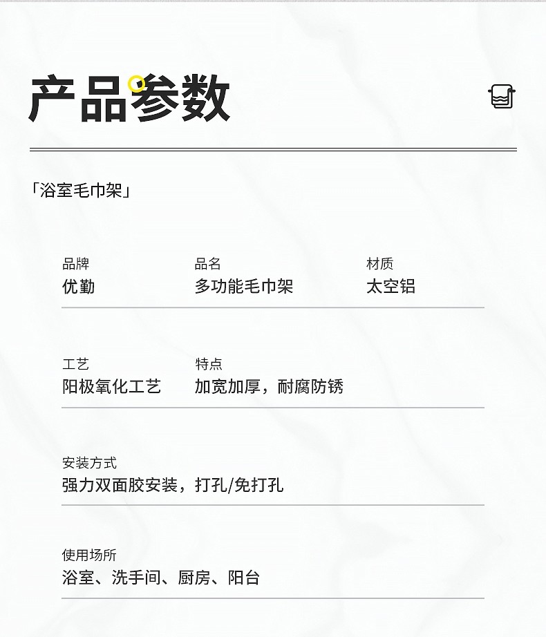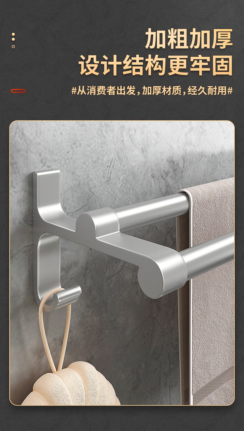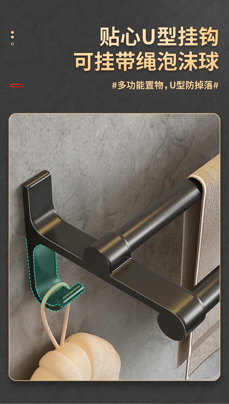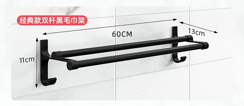 商品名称:优勤卫生间毛巾架免打孔浴室墙上双杆挂架浴巾收纳挂钩壁挂置物架 双杆黑-60cm