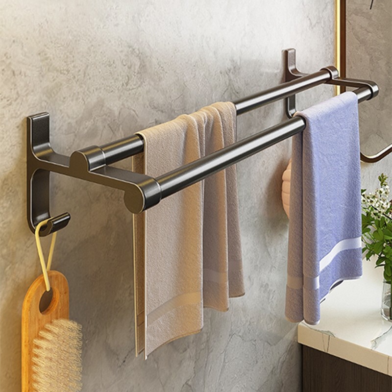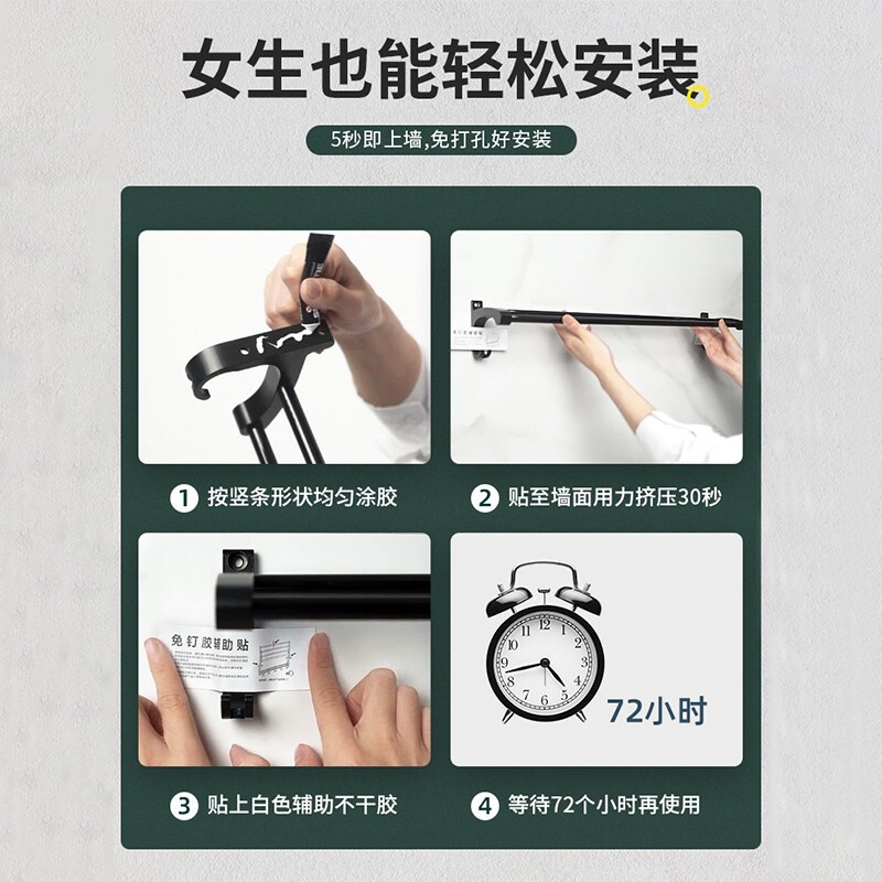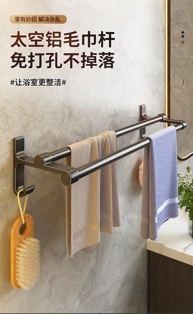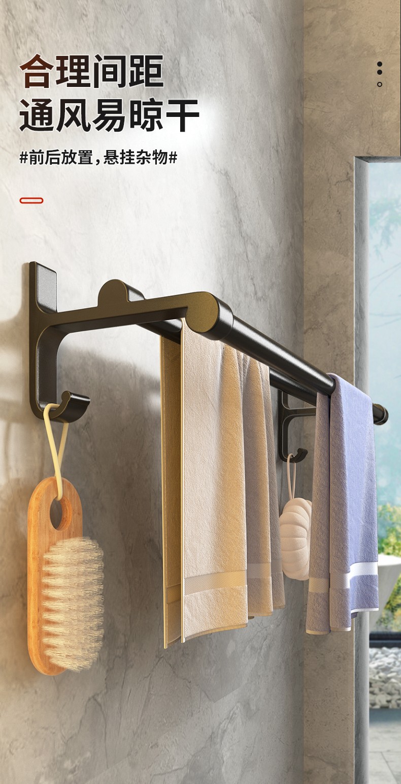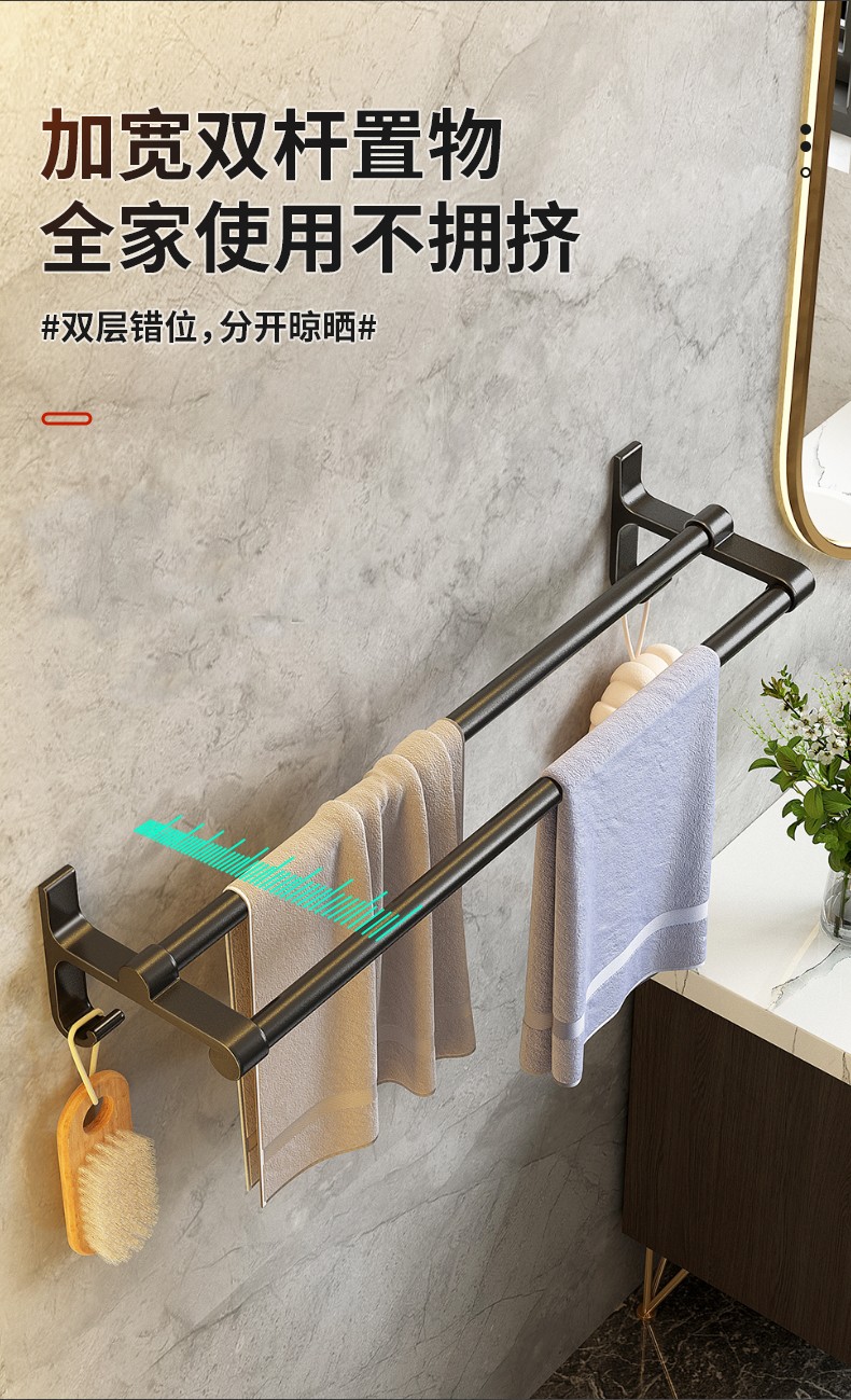 优勤卫生间毛巾架免打孔浴室墙上双杆挂架浴巾收纳挂钩壁挂置物架 双杆黑-60cm