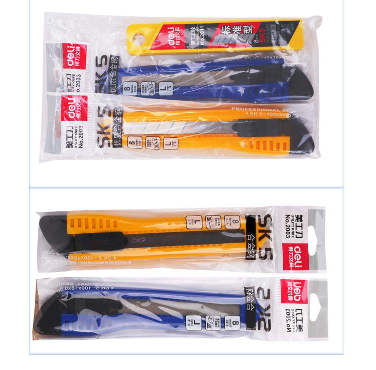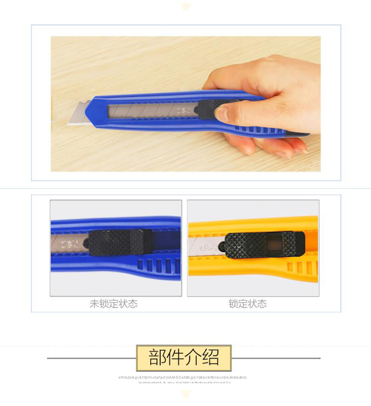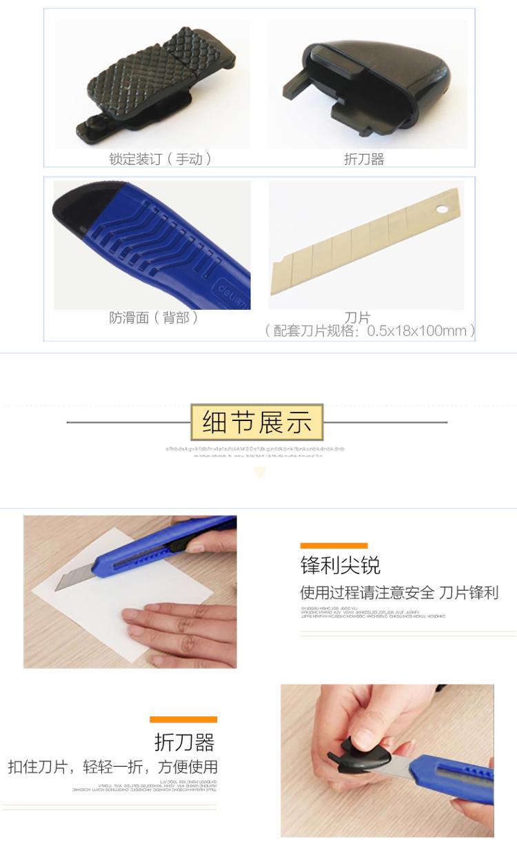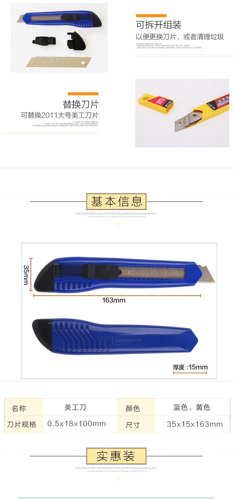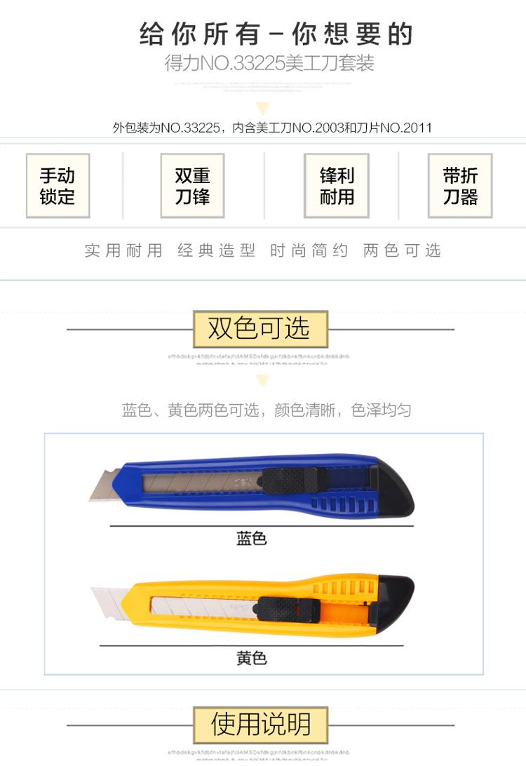 商品名称:得力(deli)大号耐用美工刀套装 美工刀2把+10片装刀片 办公用品 33225