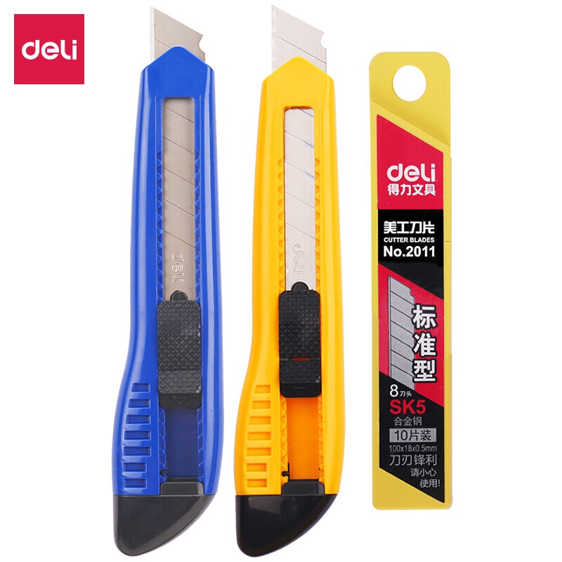 得力(deli)大号耐用美工刀套装 美工刀2把+10片装刀片 办公用品 33225