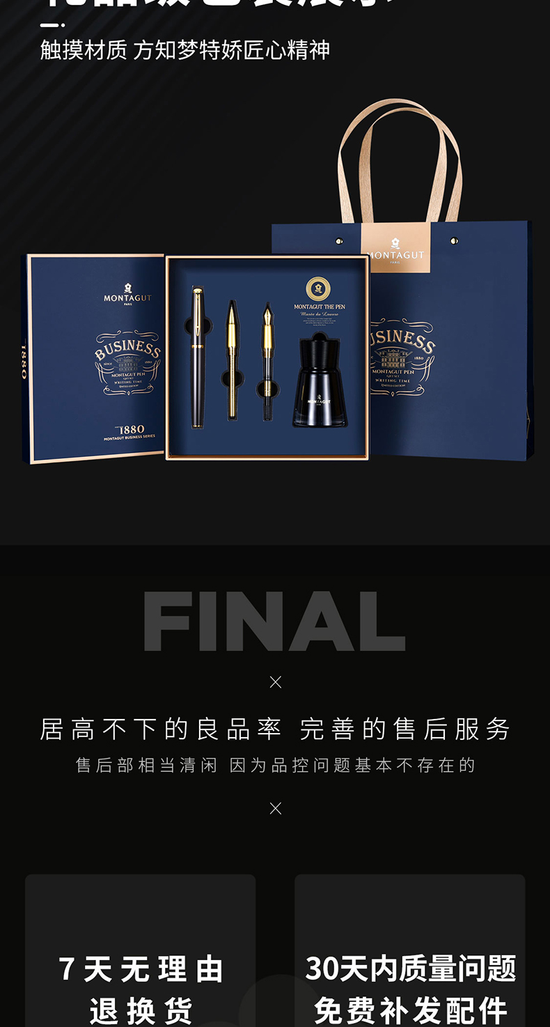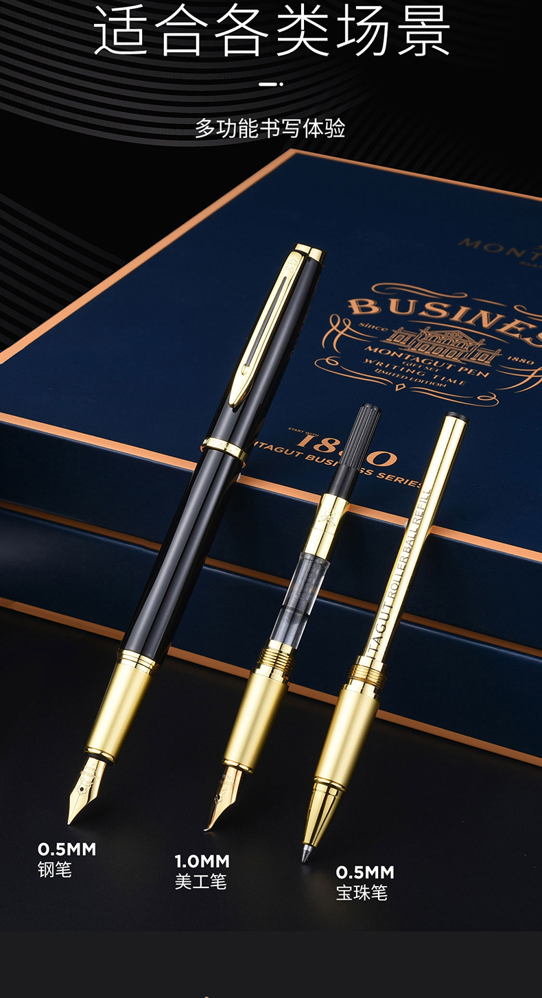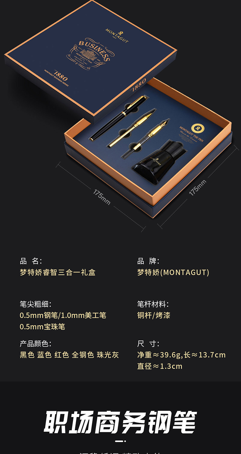 商品名称:梦特娇(MONTAGUT)钢笔/签字笔/美工笔三合一练字笔男女款办公礼品墨水礼盒套装睿智系列2007-1 黑丽雅