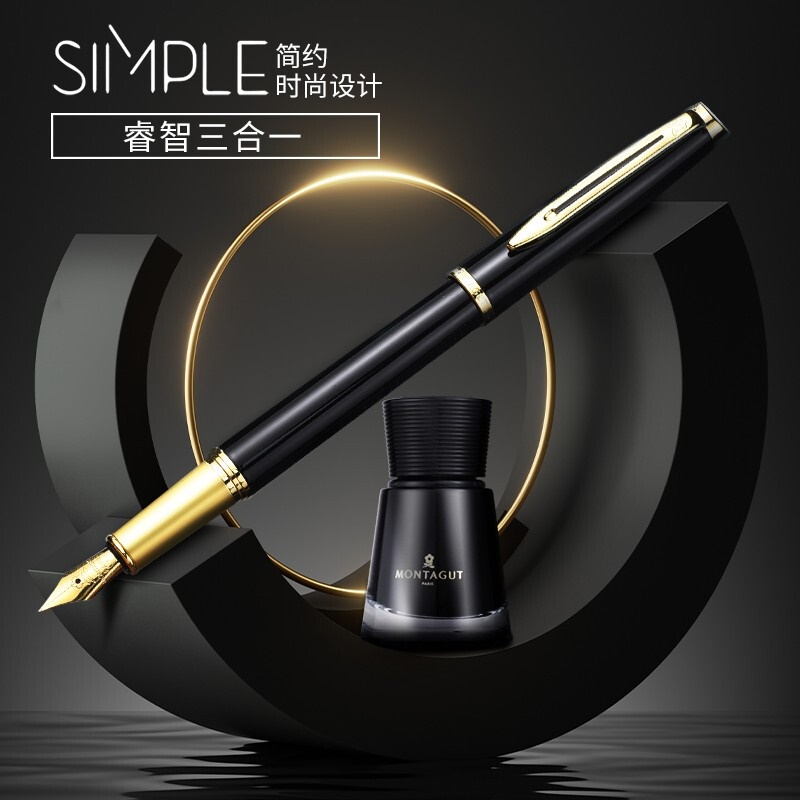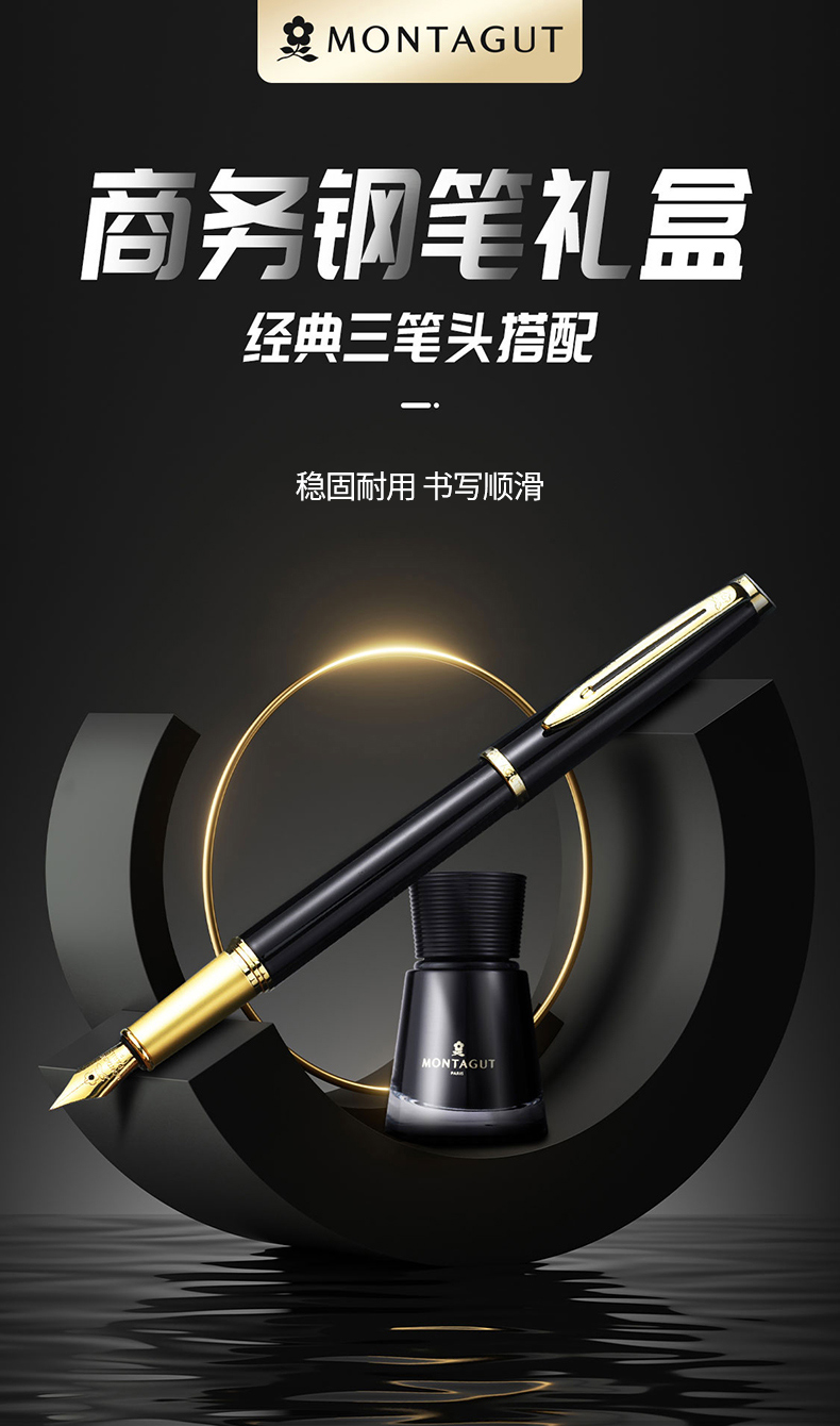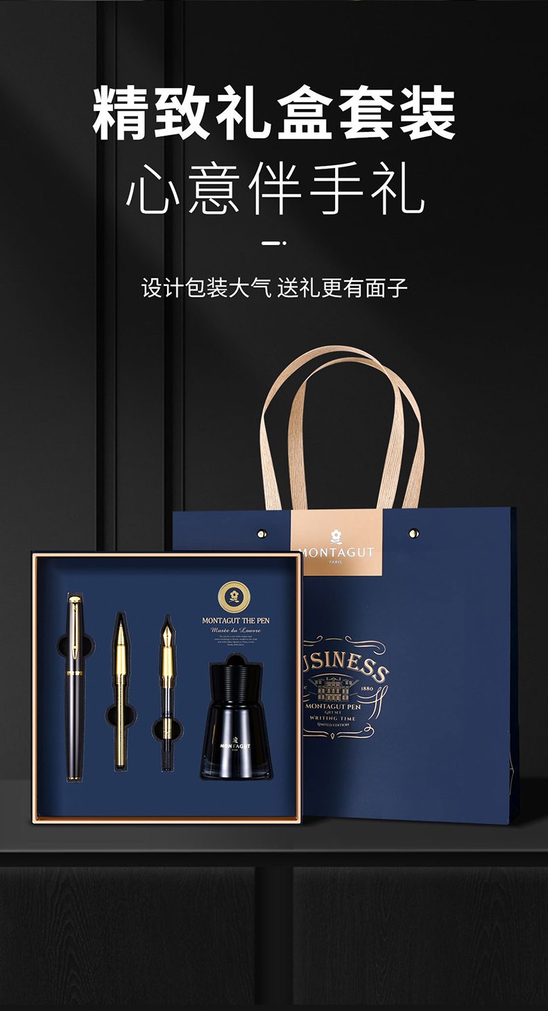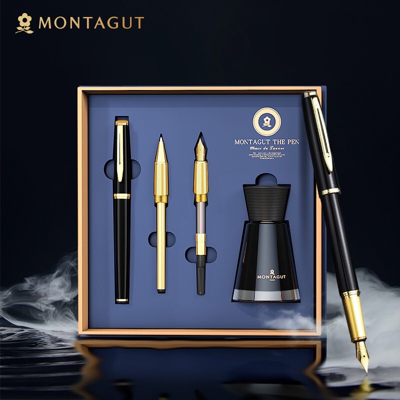 梦特娇(MONTAGUT)钢笔/签字笔/美工笔三合一练字笔男女款办公礼品墨水礼盒套装睿智系列2007-1 黑丽雅