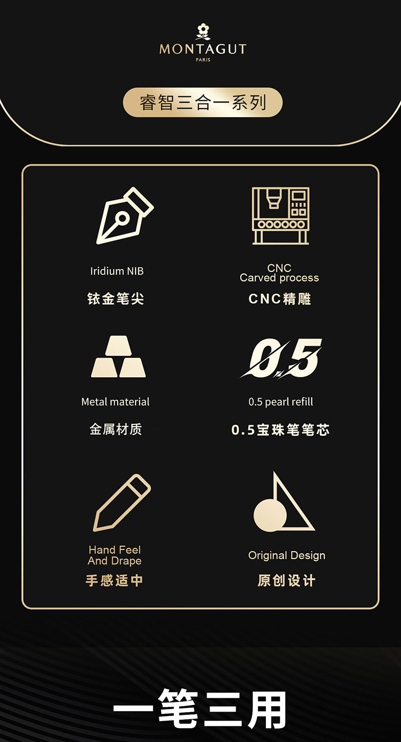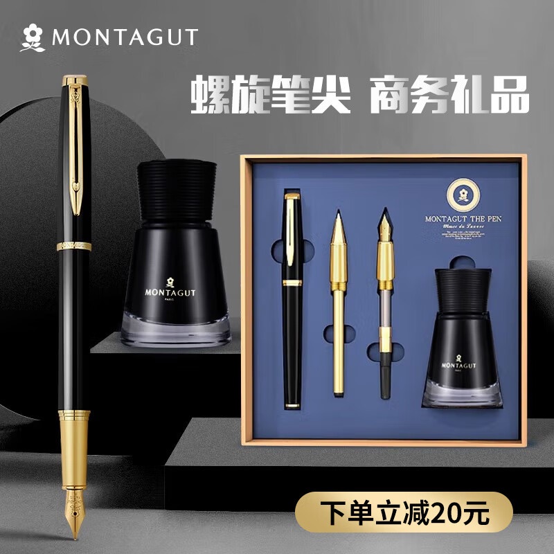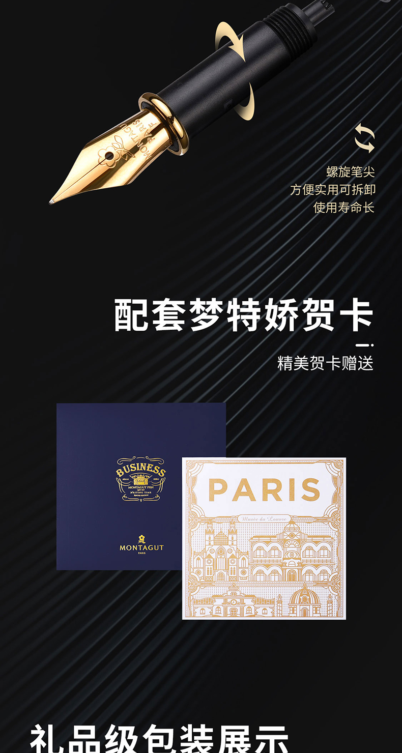 梦特娇(MONTAGUT)钢笔/签字笔/美工笔三合一练字笔男女款办公礼品墨水礼盒套装睿智系列2007-1 黑丽雅
