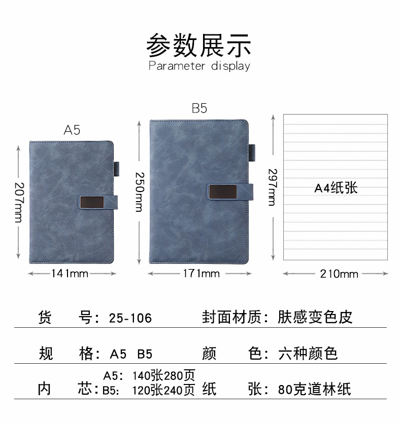 商品名称:简勋(JIANXUN) a5笔记本子简约加厚皮面商务记事本工作会议日记学生记录本可定制LOGO礼盒 A5浅蓝【单本款】