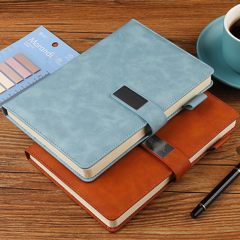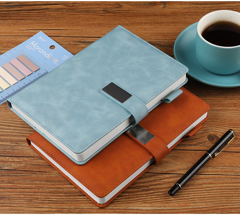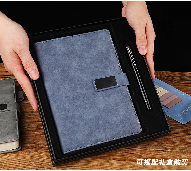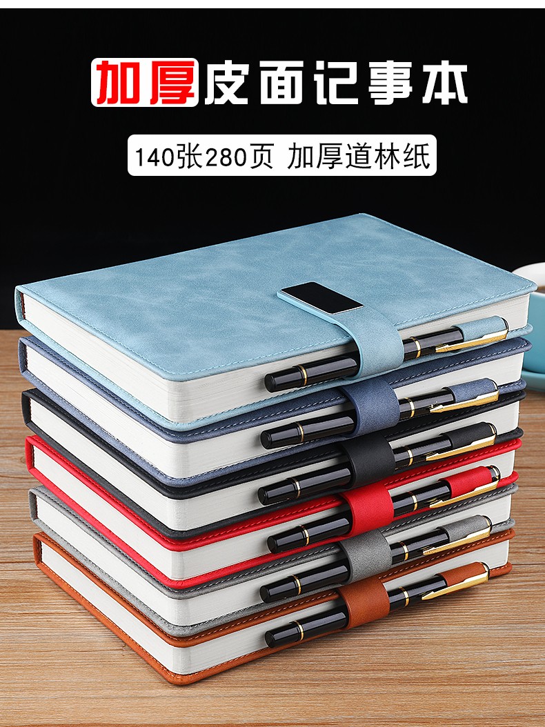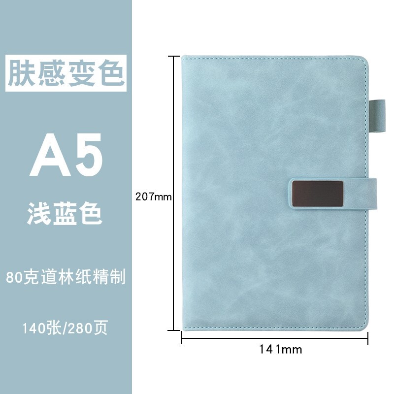 简勋(JIANXUN) a5笔记本子简约加厚皮面商务记事本工作会议日记学生记录本可定制LOGO礼盒 A5浅蓝【单本款】