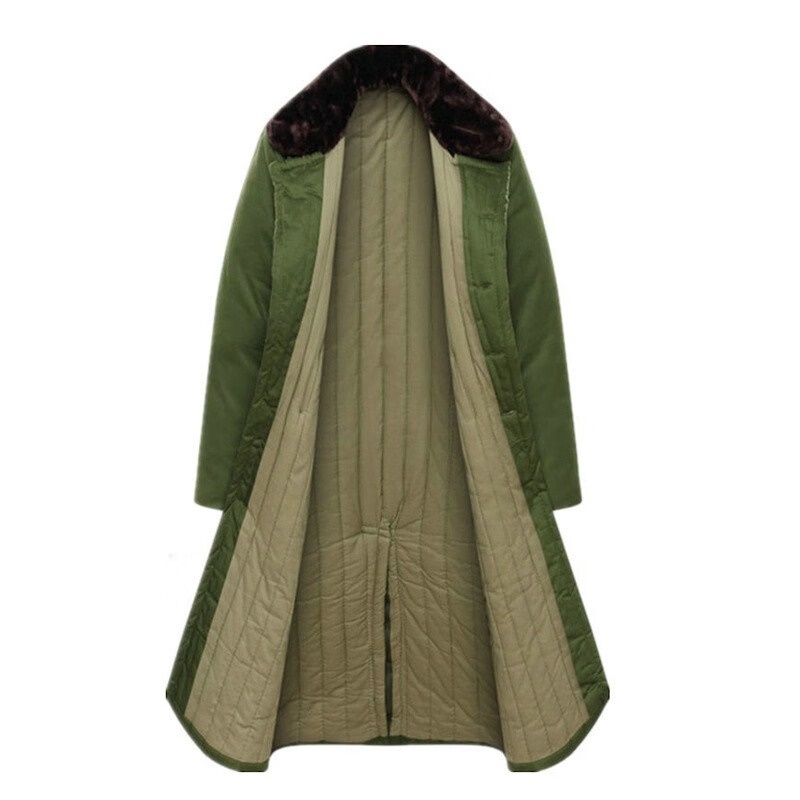 商品名称:《冬款棉大衣加厚长款防风保暖抗寒工作服救灾劳保军绿色棉大衣 加厚款军绿棉里大衣 均码》
