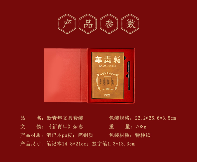 商品名称:中国国家博物馆《新青年》文具套装PU皮笔记本套装文创学生用品记事本备忘本子生日礼品创意礼物 《新青年》文具套装