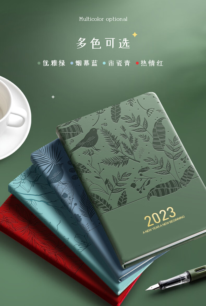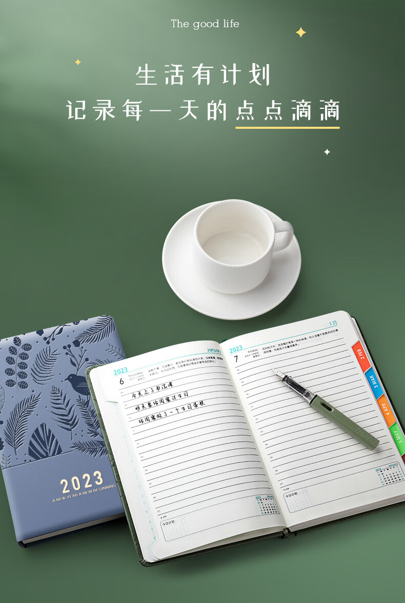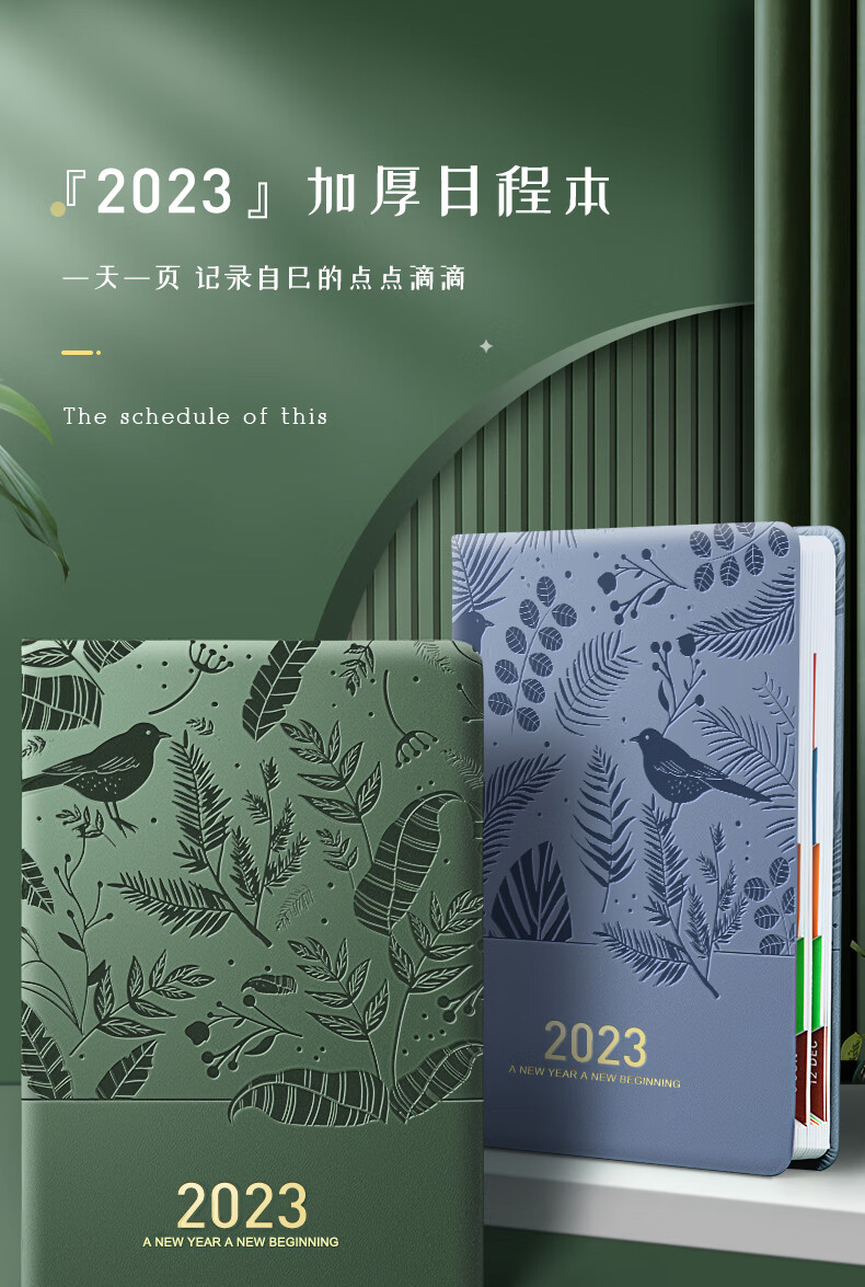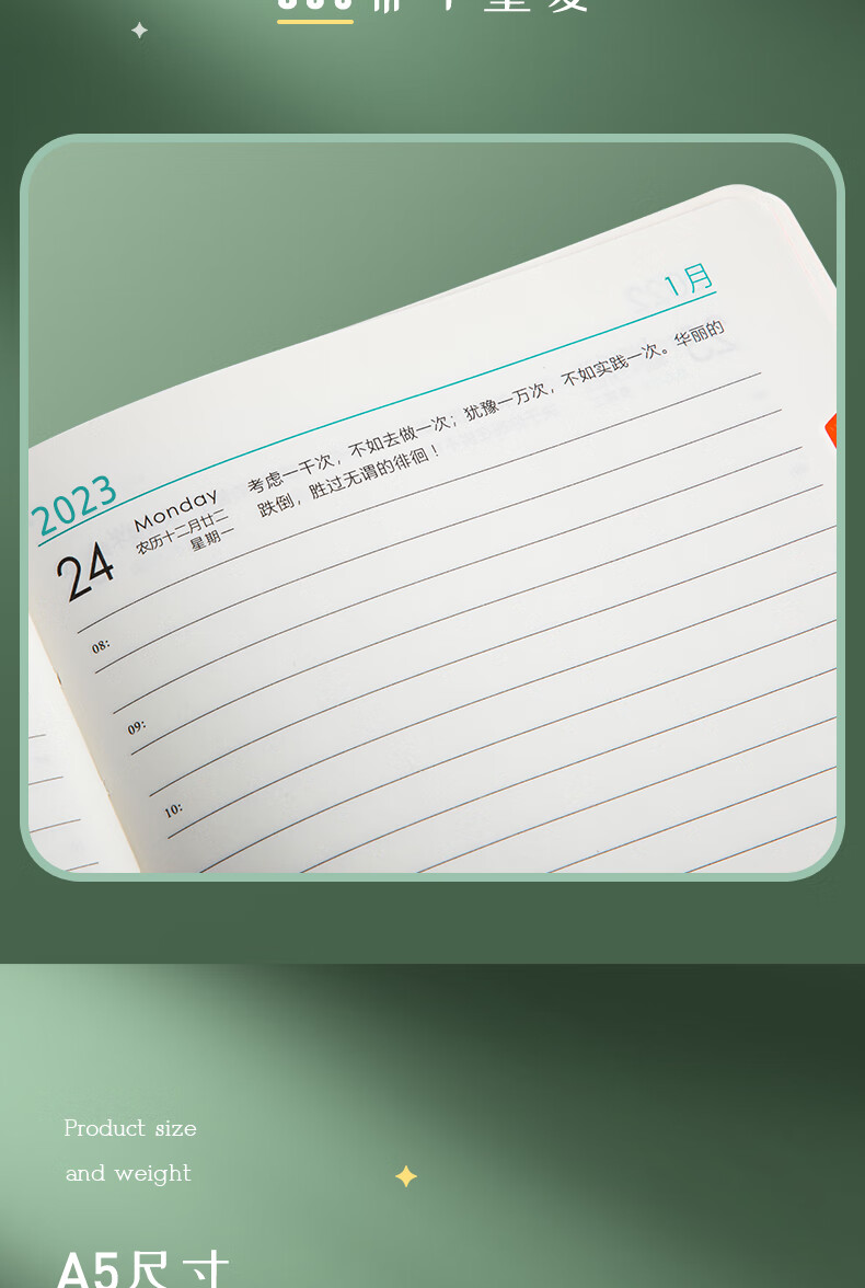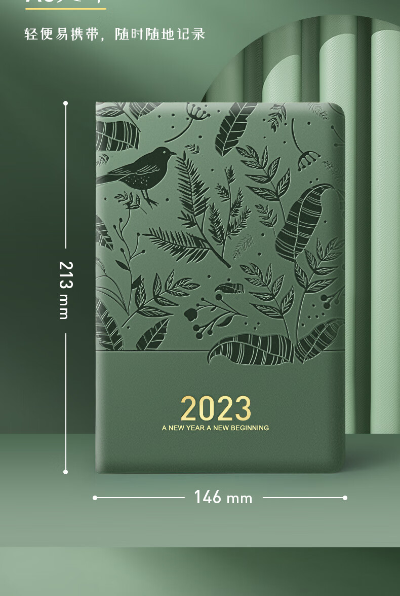 商品名称:名卓 2023日程本效率手册a5笔记本子365天日历计划本一天一页自律打卡商务手账日记本办公定制刻字 【A5 荷叶绿】