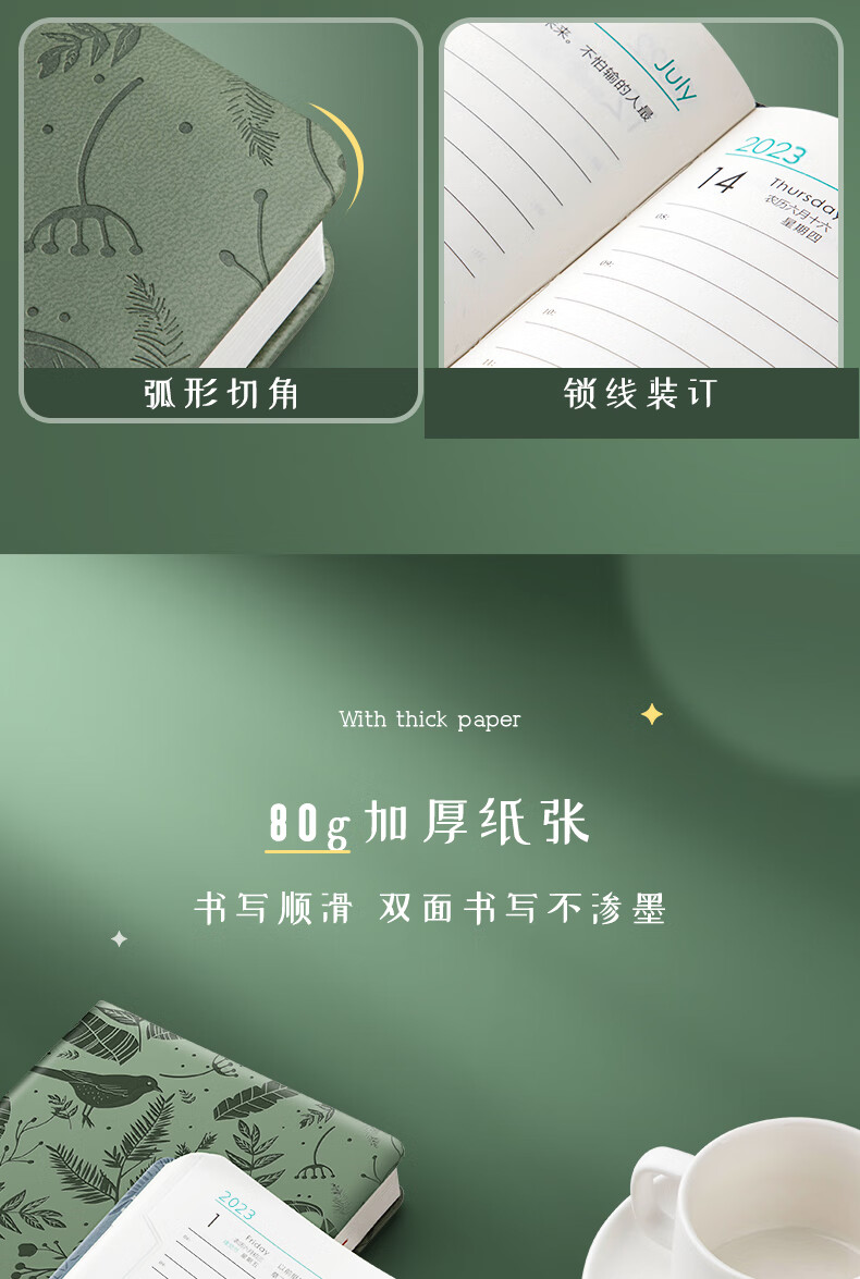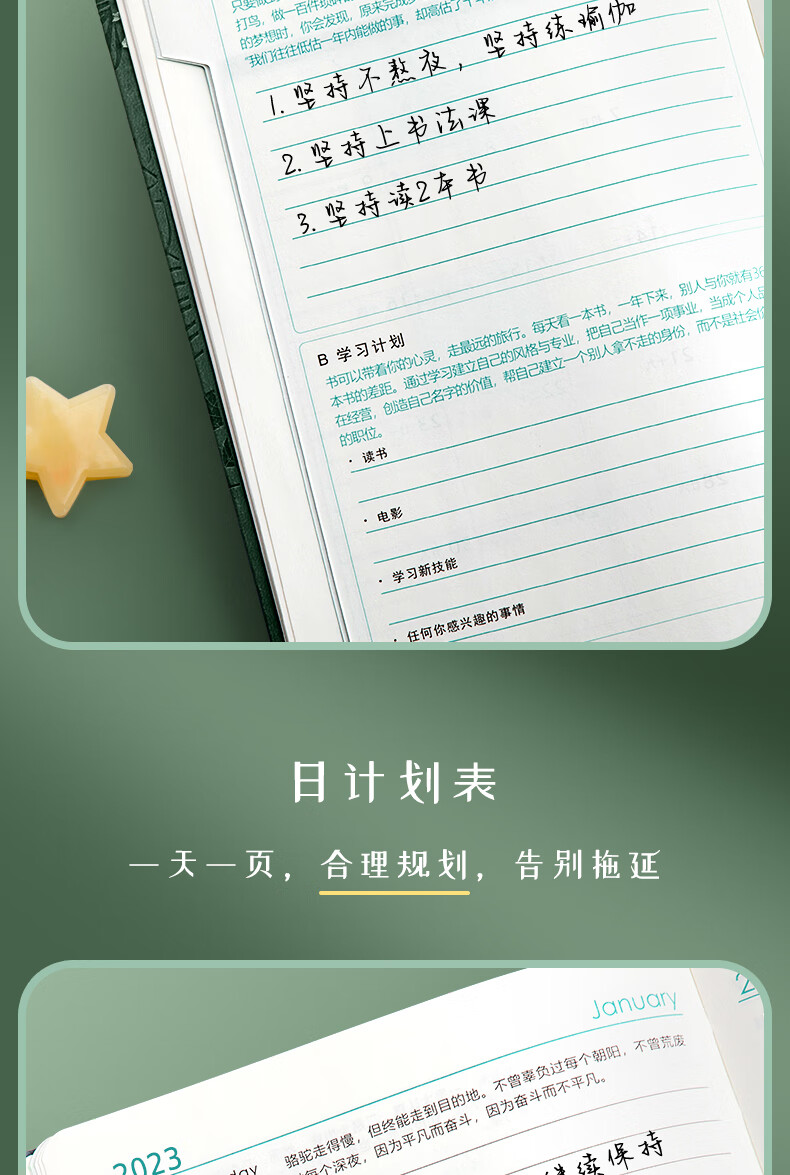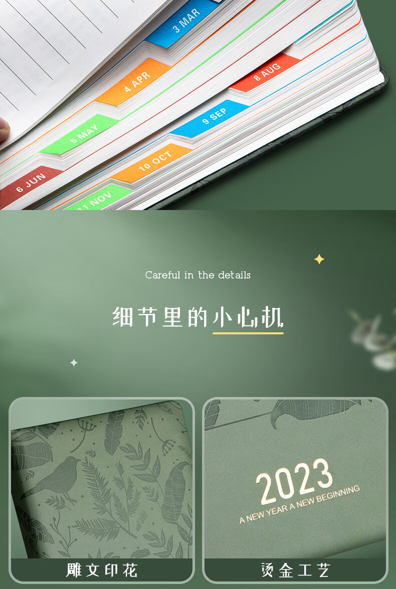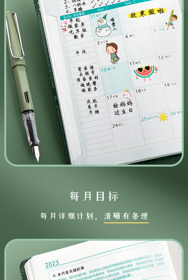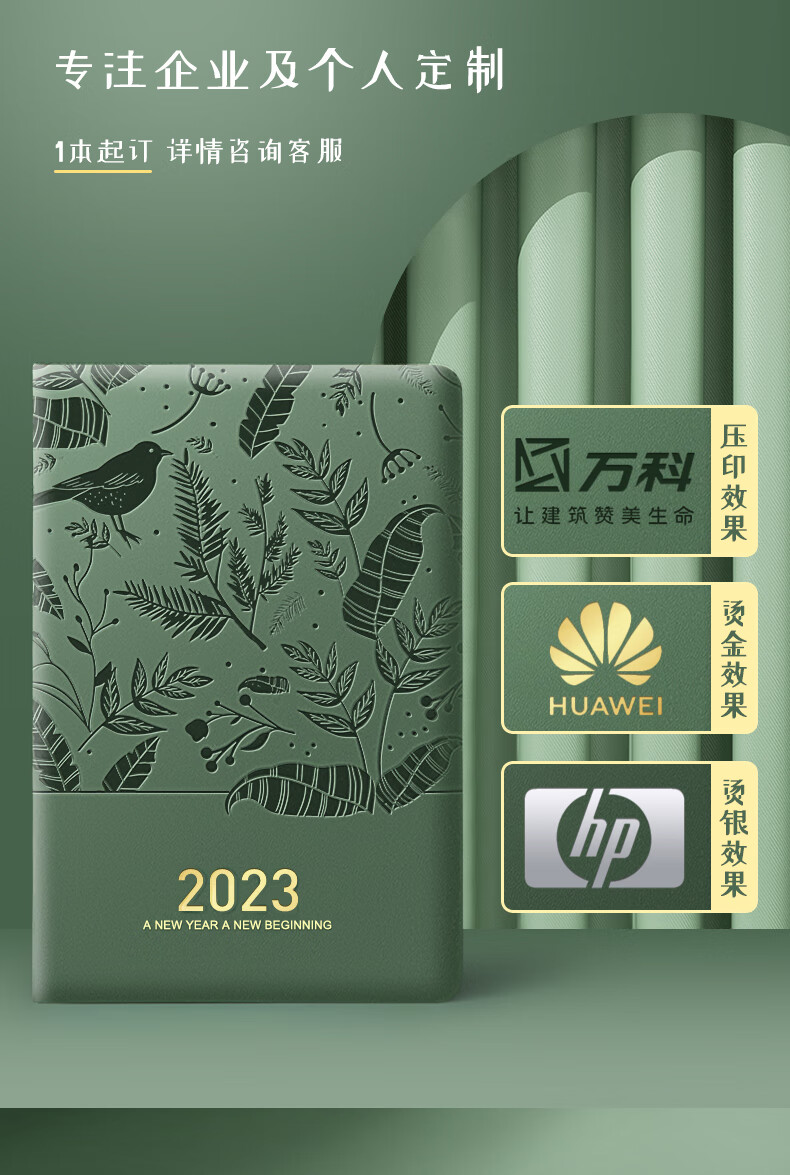 商品名称:名卓 2023日程本效率手册a5笔记本子365天日历计划本一天一页自律打卡商务手账日记本办公定制刻字 【A5 荷叶绿】