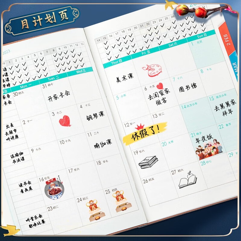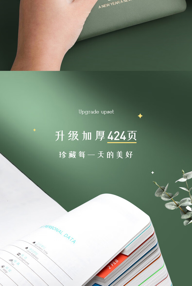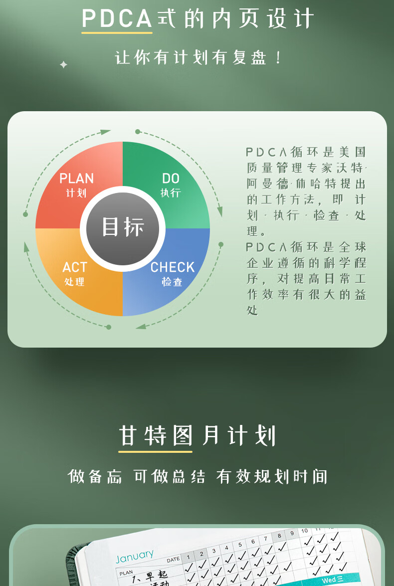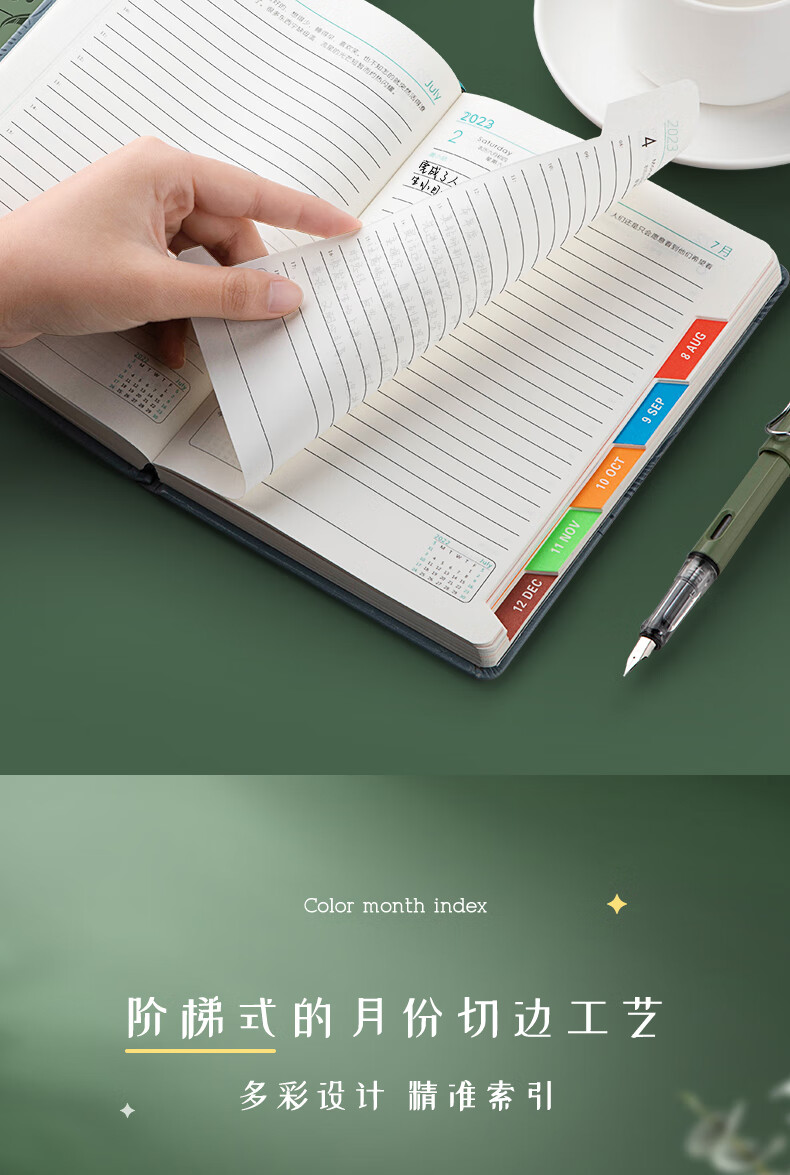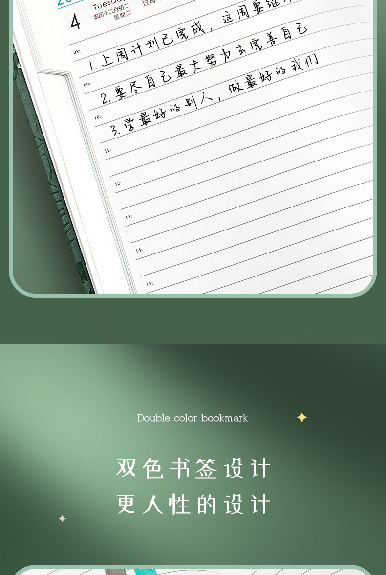商品名称:名卓 2023日程本效率手册a5笔记本子365天日历计划本一天一页自律打卡商务手账日记本办公定制刻字 【A5 荷叶绿】