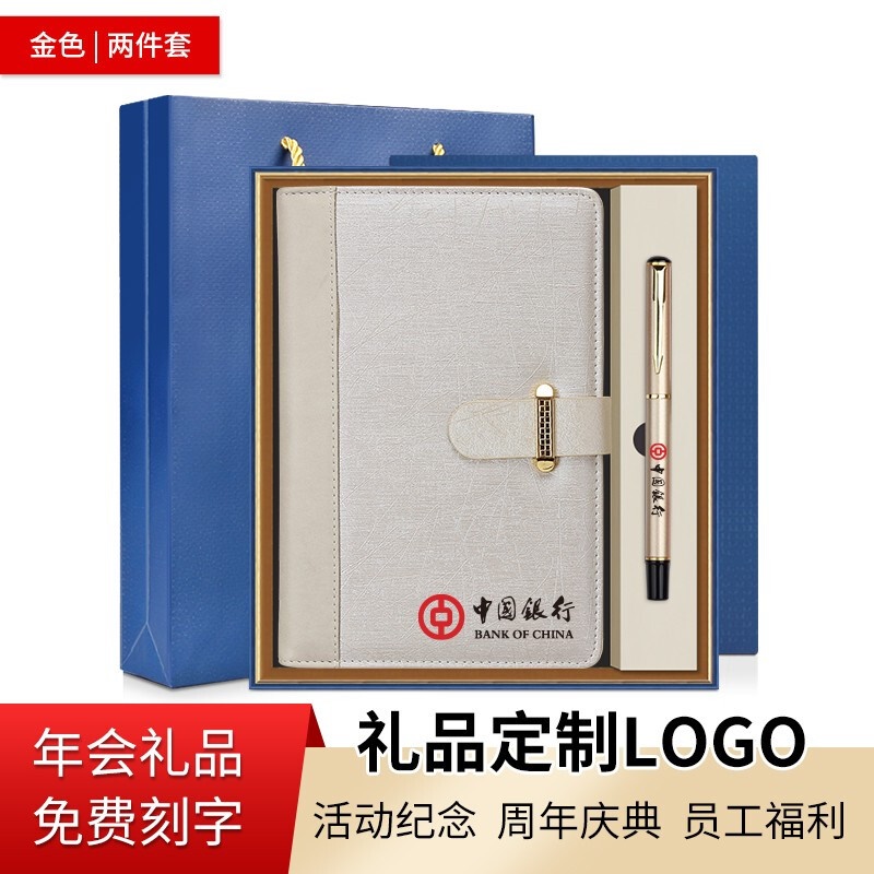 红韬 文具套装a5笔记本子文具套装公司小礼品定制刻字企业商务活动随手礼送客户实用学校奖品学生毕业礼物 金色:记事本+签字笔【蓝金盒】