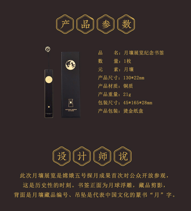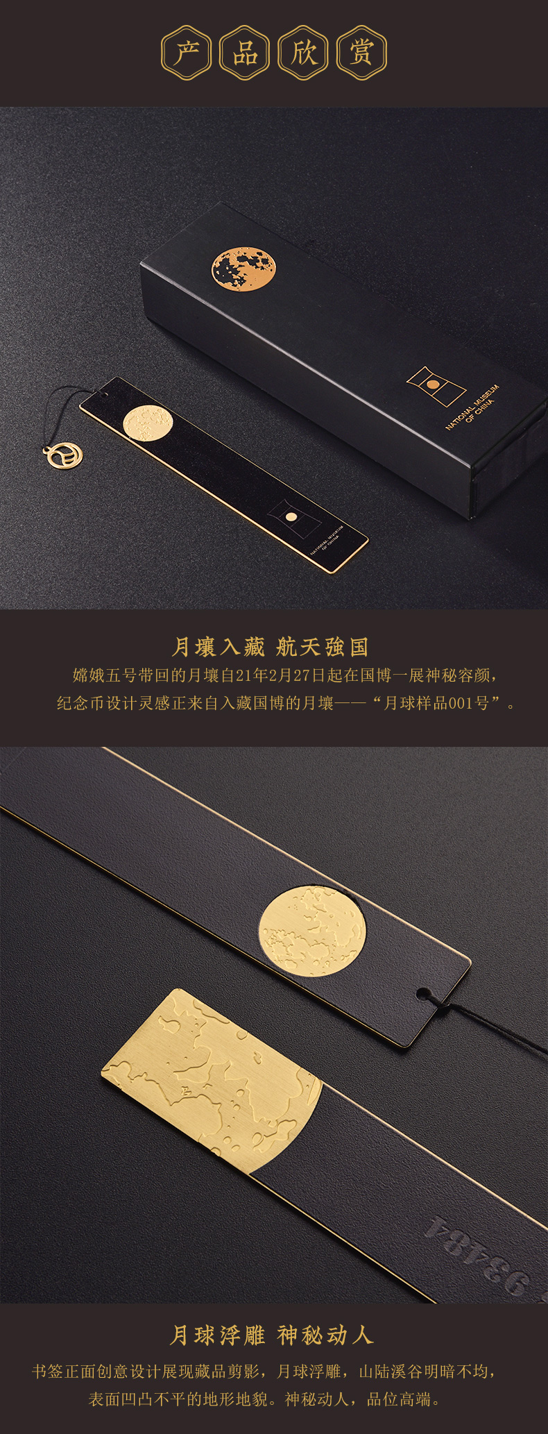 商品名称:中国国家博物馆月壤展览纪念书签纪念品金属创意国博文创收藏月球浮雕学生文具生日礼物 月壤纪念书签