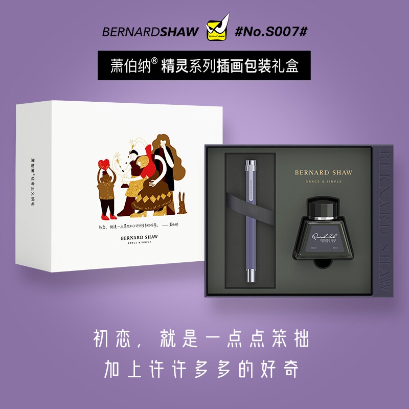 萧伯纳(Bernard Shaw) 精灵系列钢笔薰衣草紫墨水笔插画套装礼盒学生情人节送礼教师节礼物 薰衣草紫(S007插画) F尖0.6mm