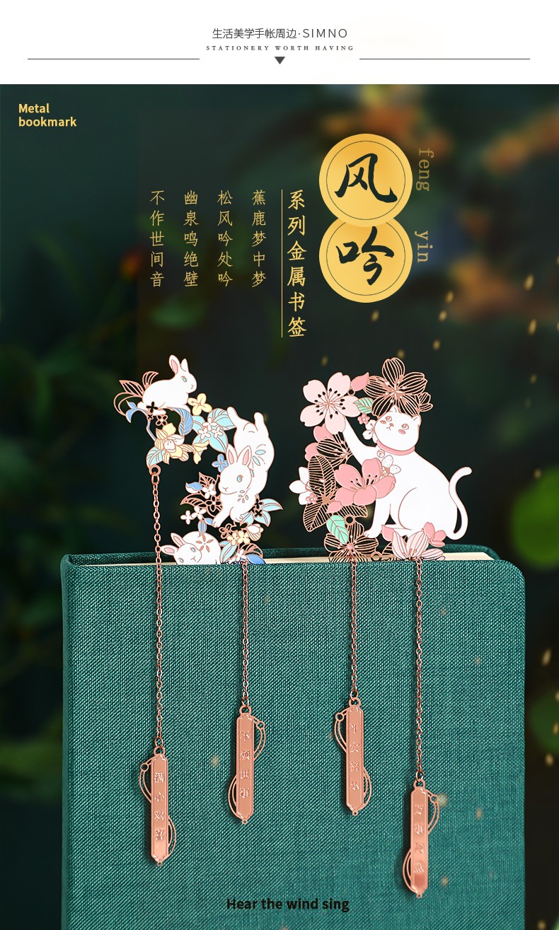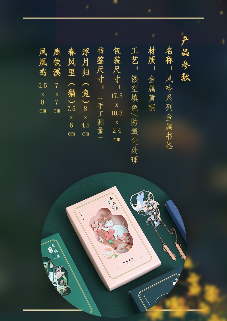 墨苒(moran) 古风金属书签中国风镂空书签黄铜精美文具礼品创意礼盒闺蜜礼物 风吹吟金属书签--凤凰鸣