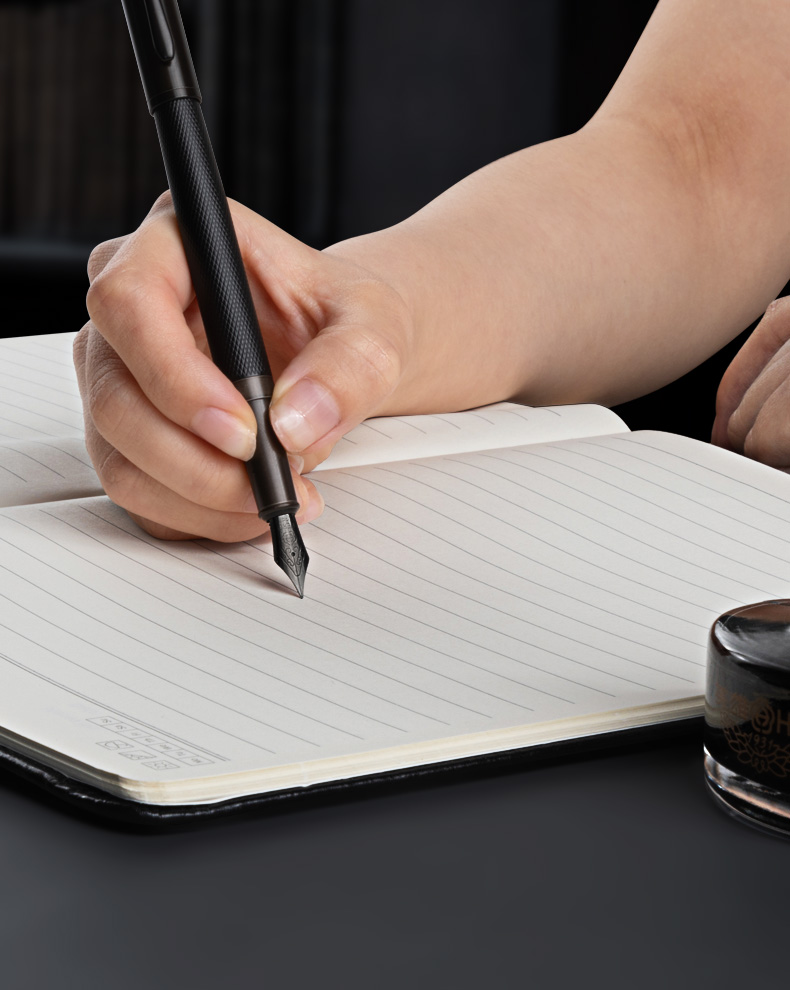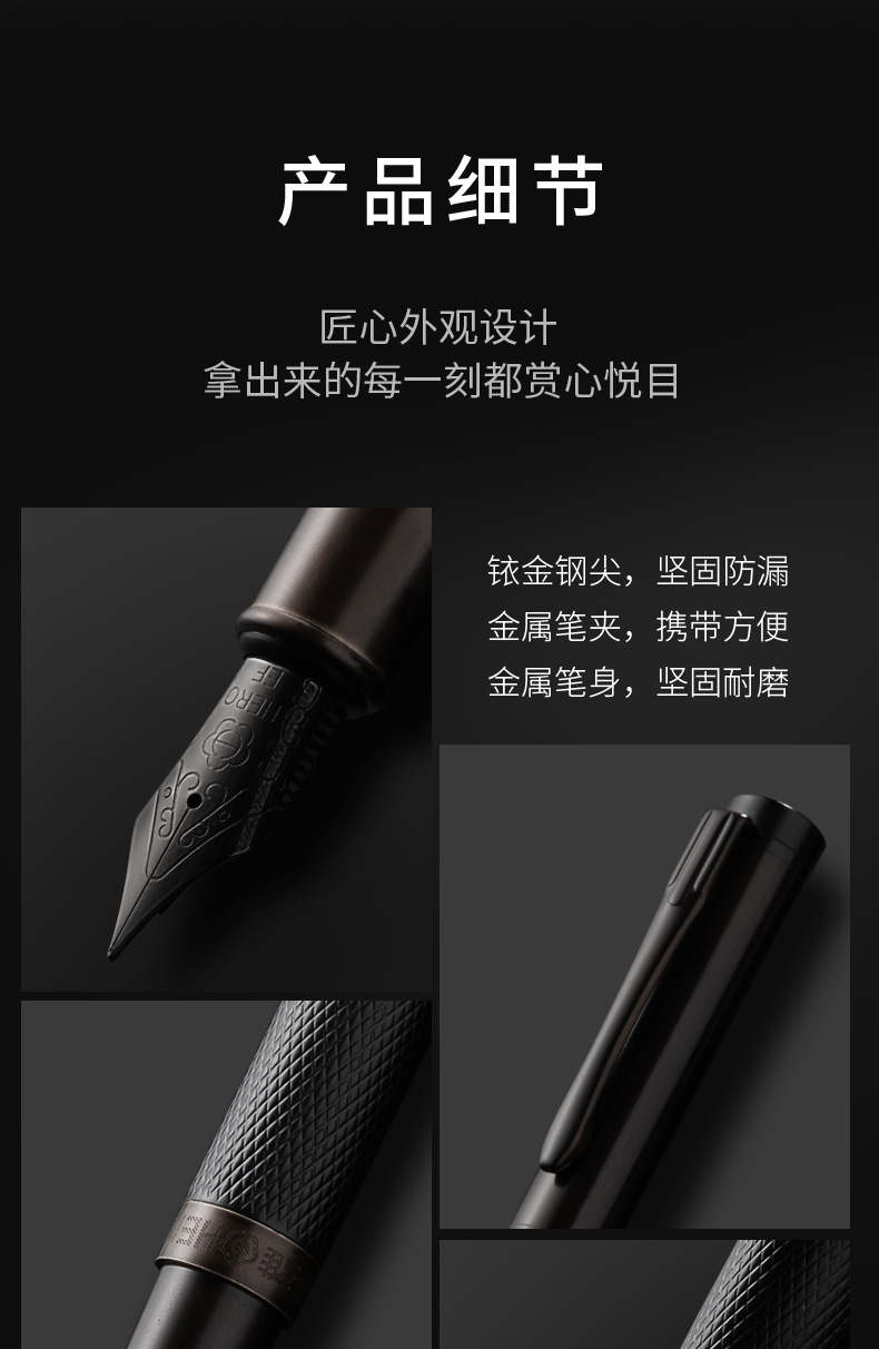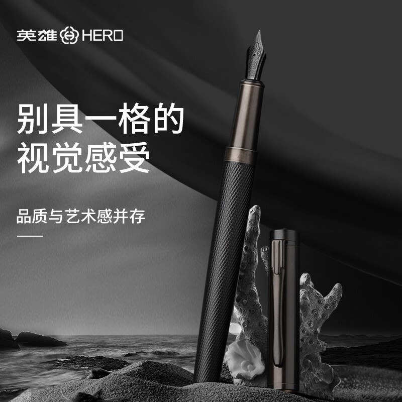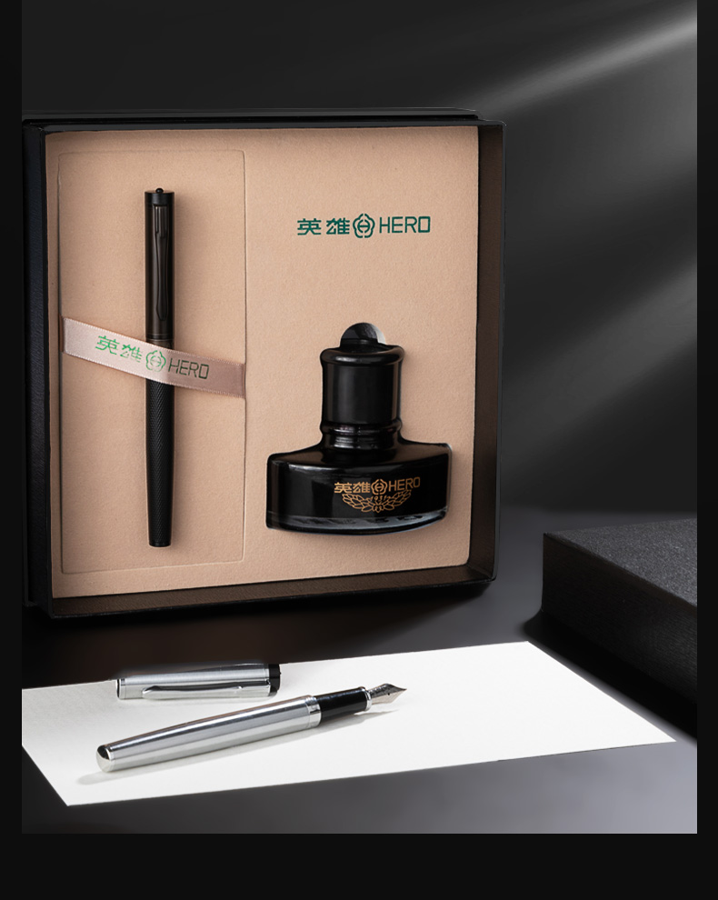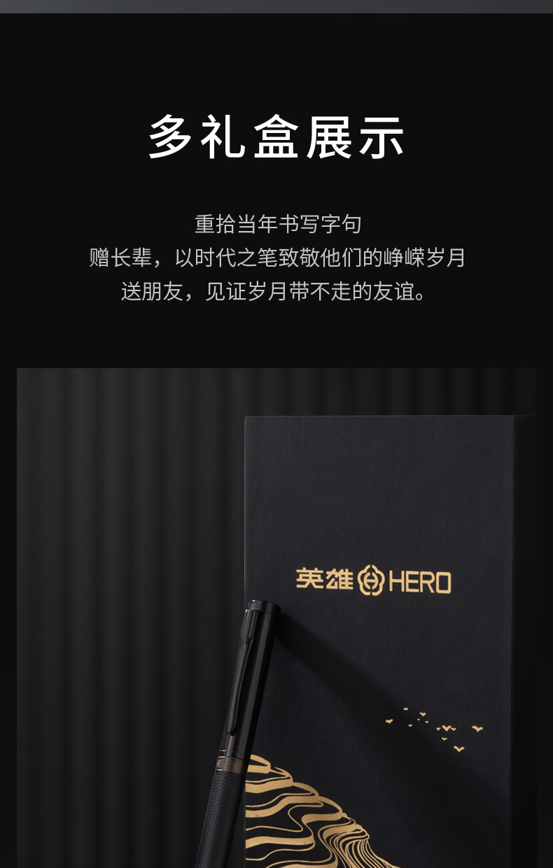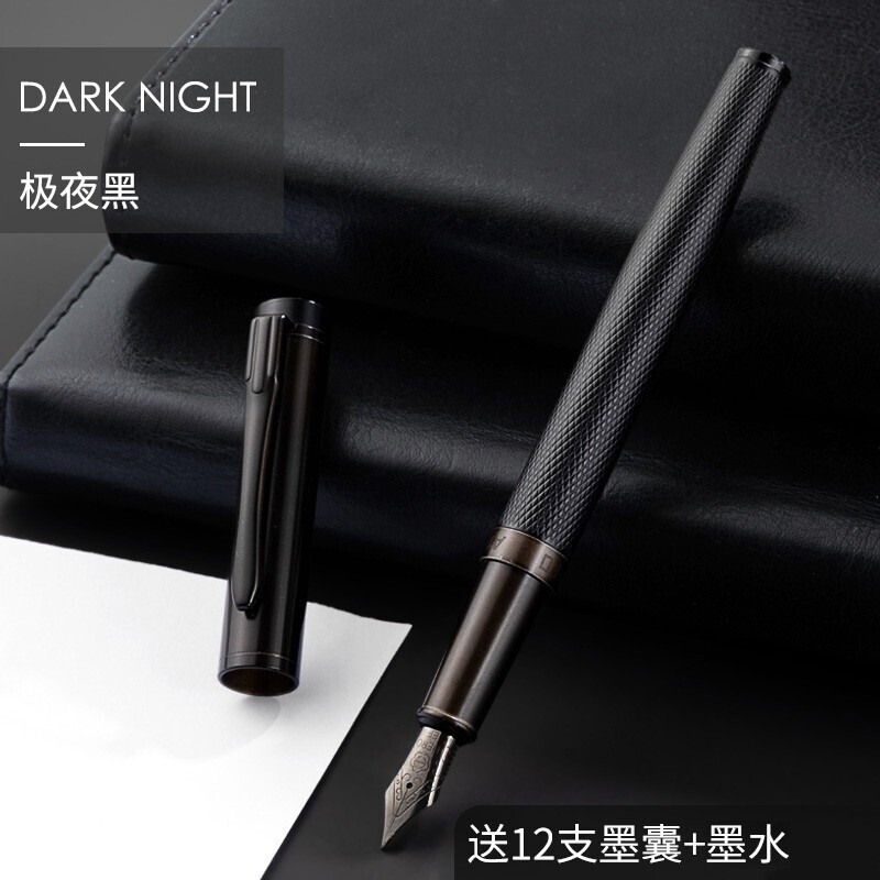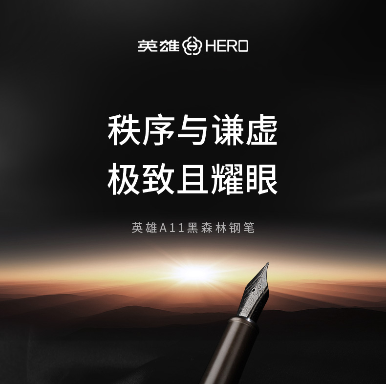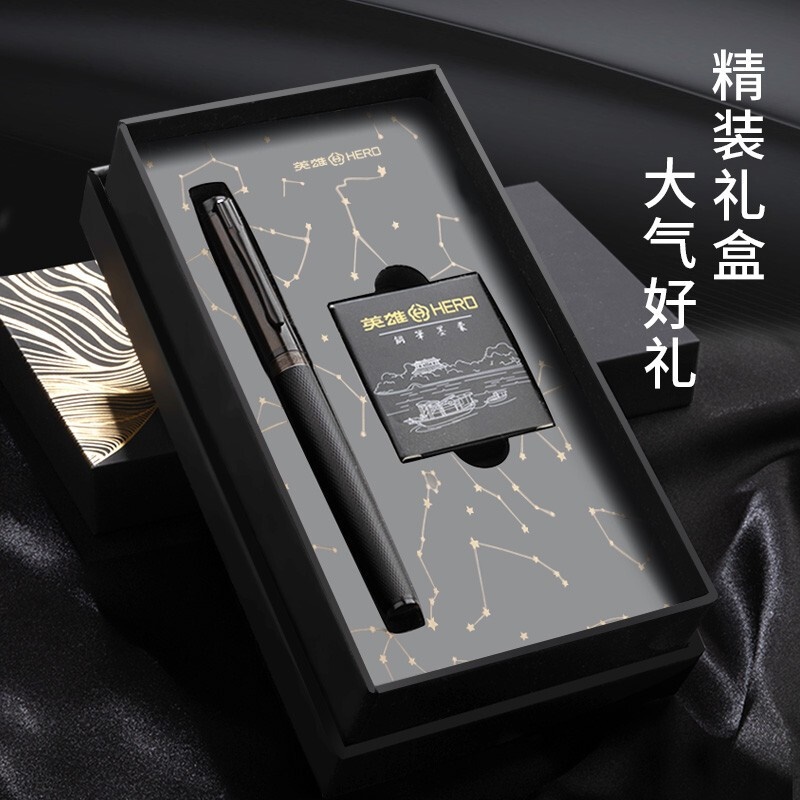 英雄(HERO) A11钢笔黑森林学生三年级专用练字墨囊可替换商务办公高端钢笔男女士礼盒套装免定制 极夜黑-简装亚克力 附12支墨囊+1瓶墨水 EF尖0.38mm