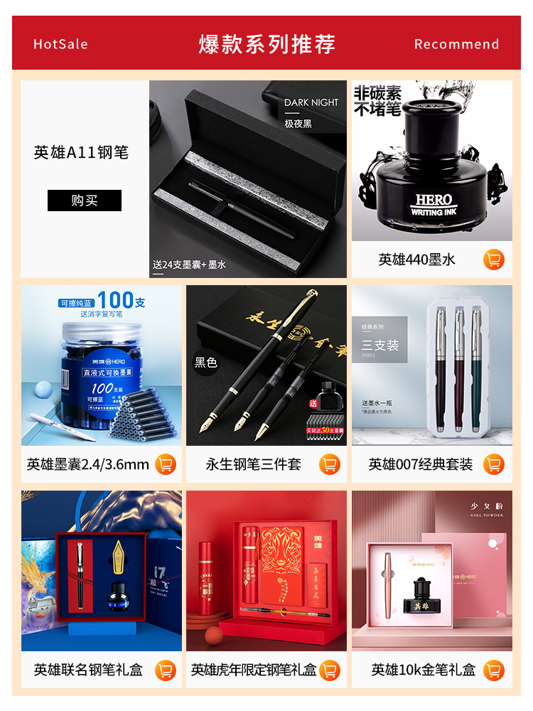 商品名称:英雄(HERO) A11钢笔黑森林学生三年级专用练字墨囊可替换商务办公高端钢笔男女士礼盒套装免定制 极夜黑-简装亚克力 附12支墨囊+1瓶墨水 EF尖0.38mm