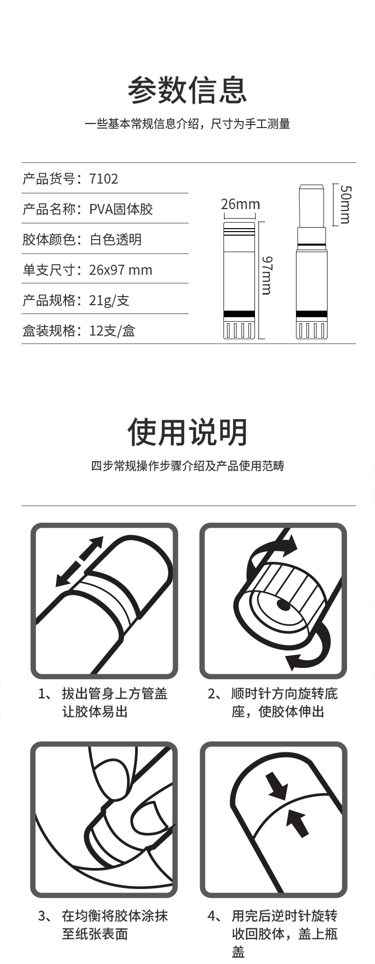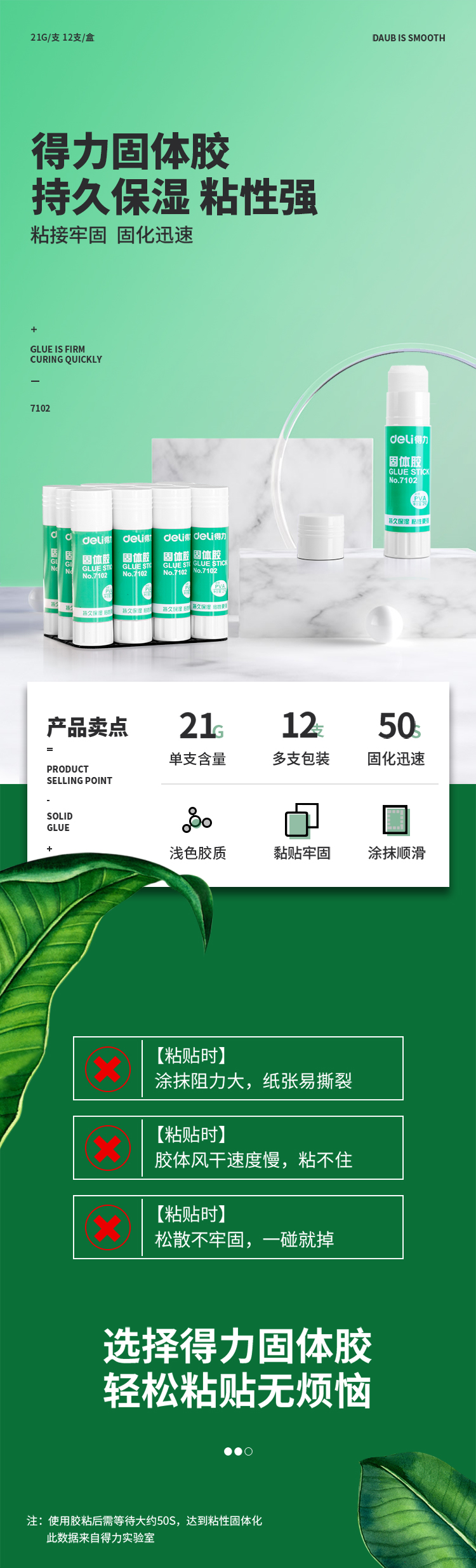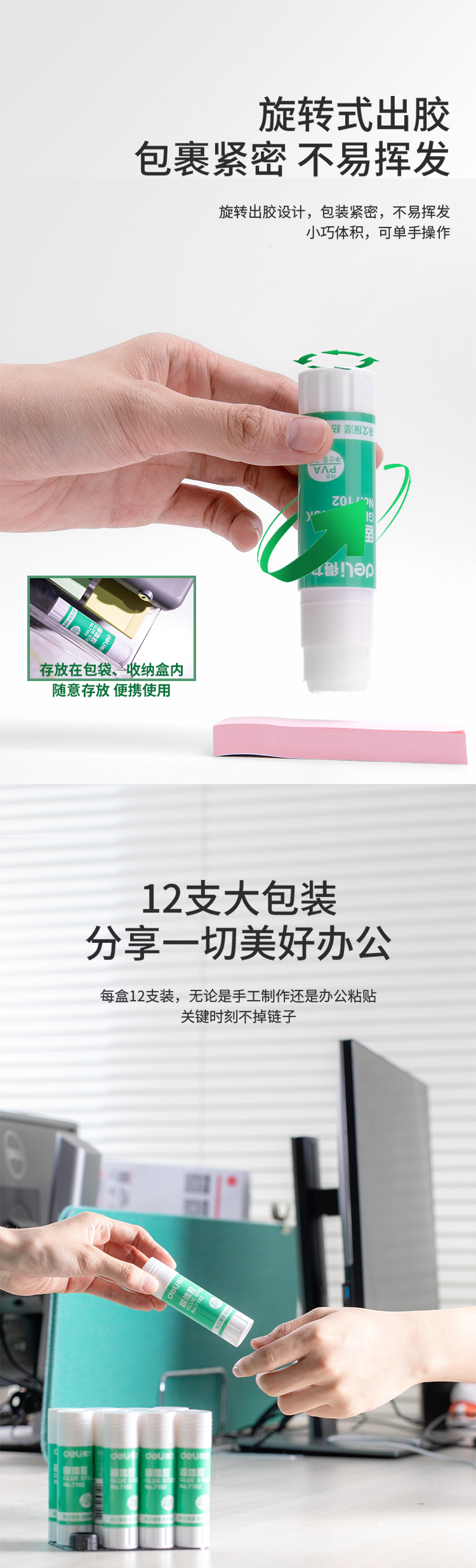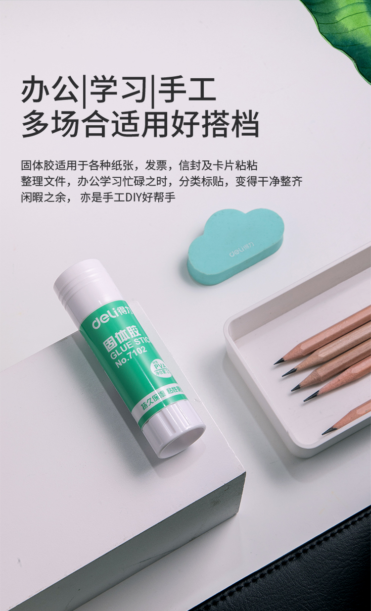 商品名称:得力(deli)21g高粘度PVA固体胶水/胶棒 快干耐用便携 学习生活手工DIY 12支/盒 办公用品 7102