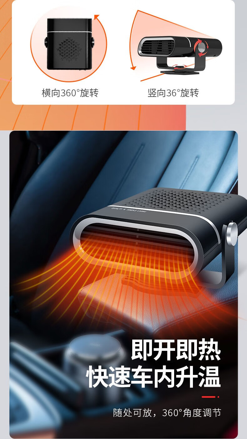商品名称:车载暖风机汽车大货车12V24V冬季车内速热暖风扇除雾加热取暖神器 【12V黑色】小车专用 汽车用品