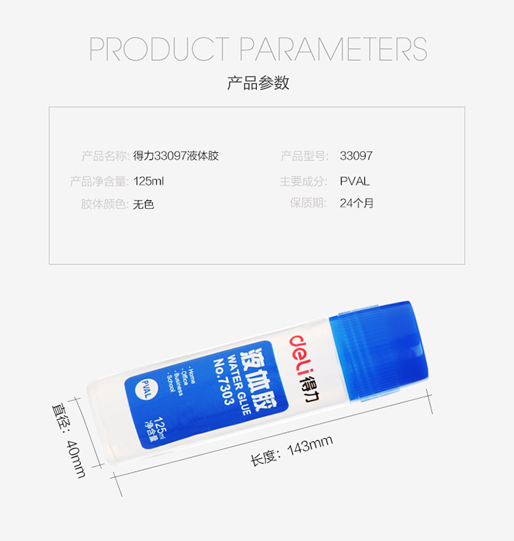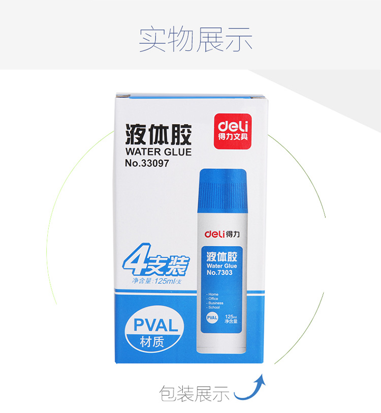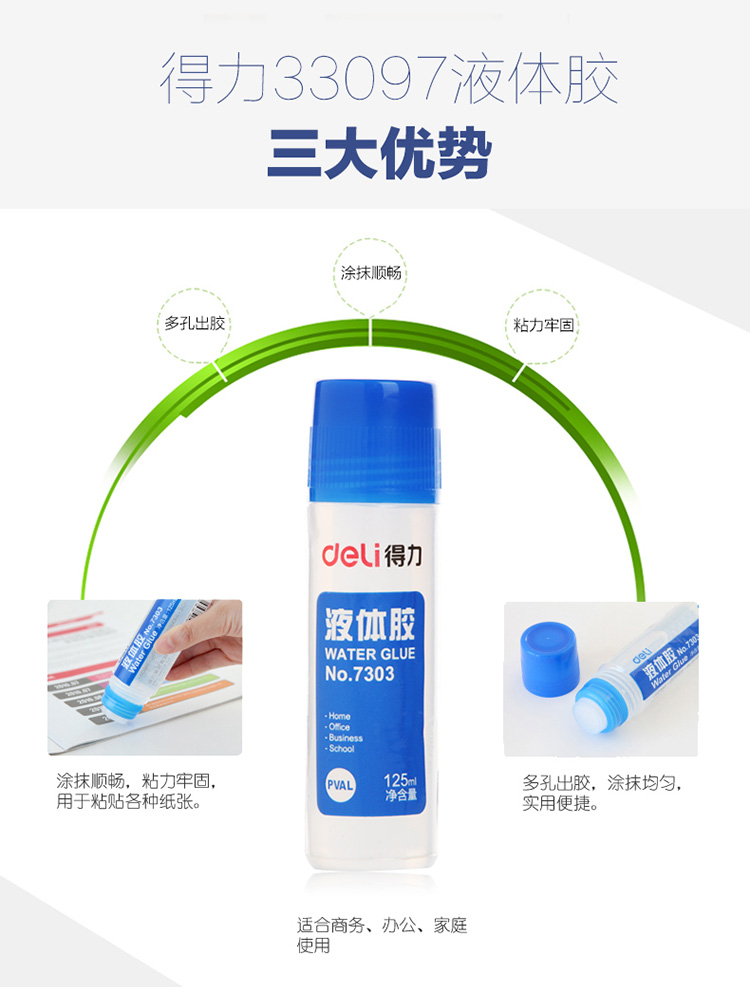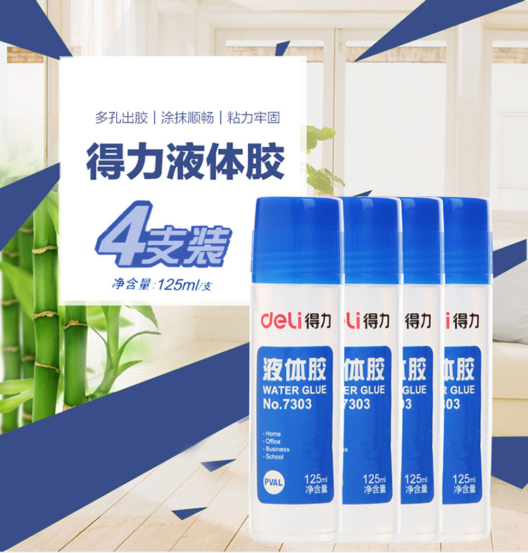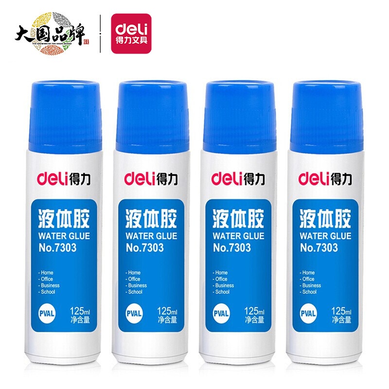 商品名称:得力(deli)125ml高粘度液体胶 学习办公通用胶水 4只装 办公用品 33097